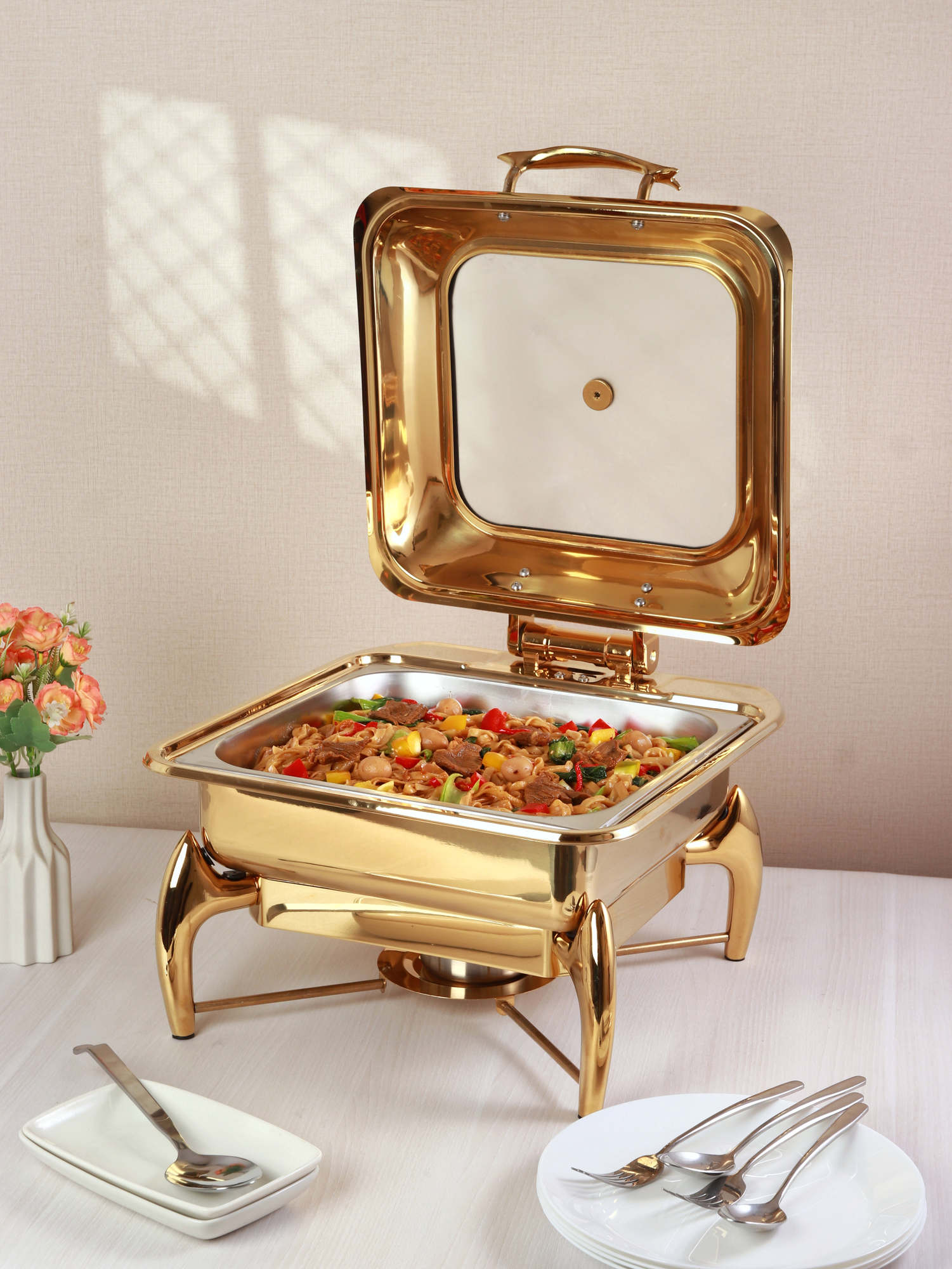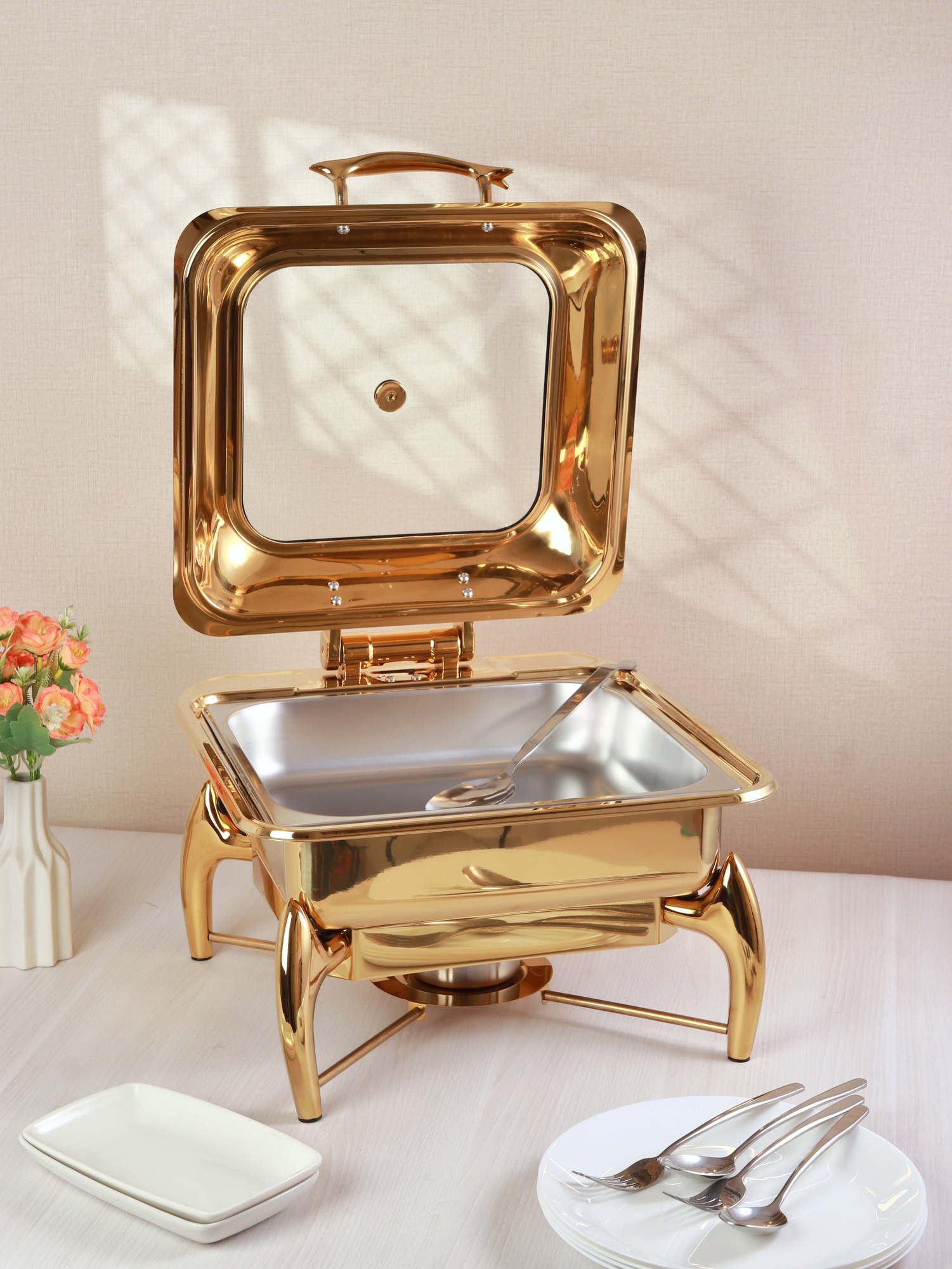 Kehadiran chafing dish ini sangat sempurna untuk menyajikan hidangan dalam konsep buffet. Kapasitas dan desainnya yang menawan membuat produk ini menjadi pilihan ideal yang praktis dan sempurna untuk setiap momen spesial sehingga terasa lebih istimewa.