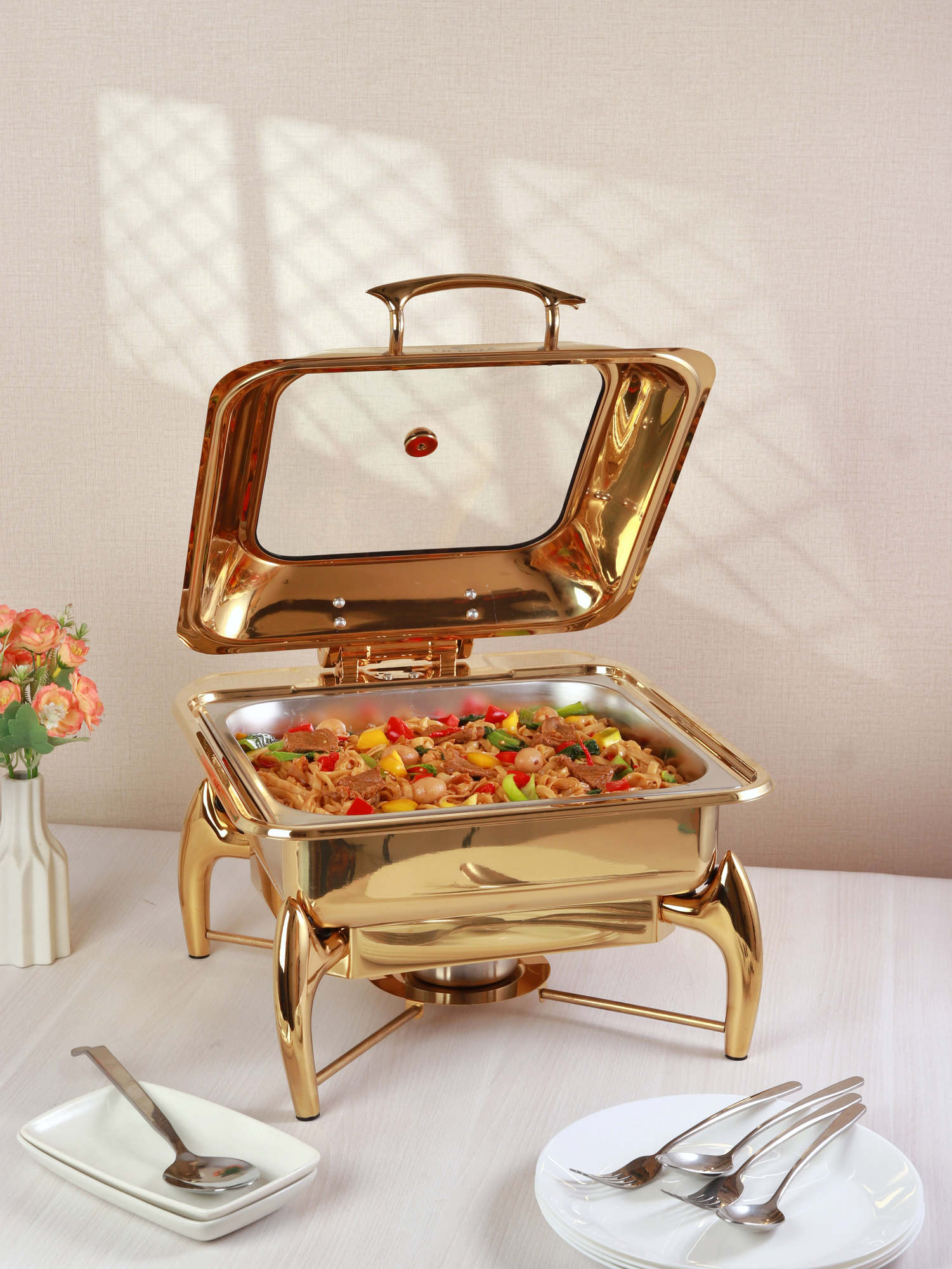 Chafing dish dapat terbuka dan tertutup dengan stabil