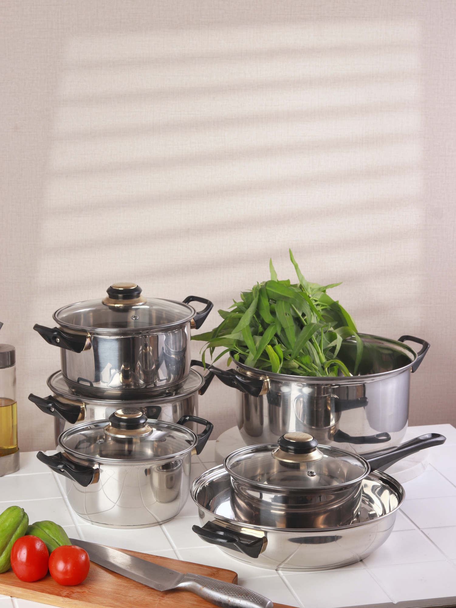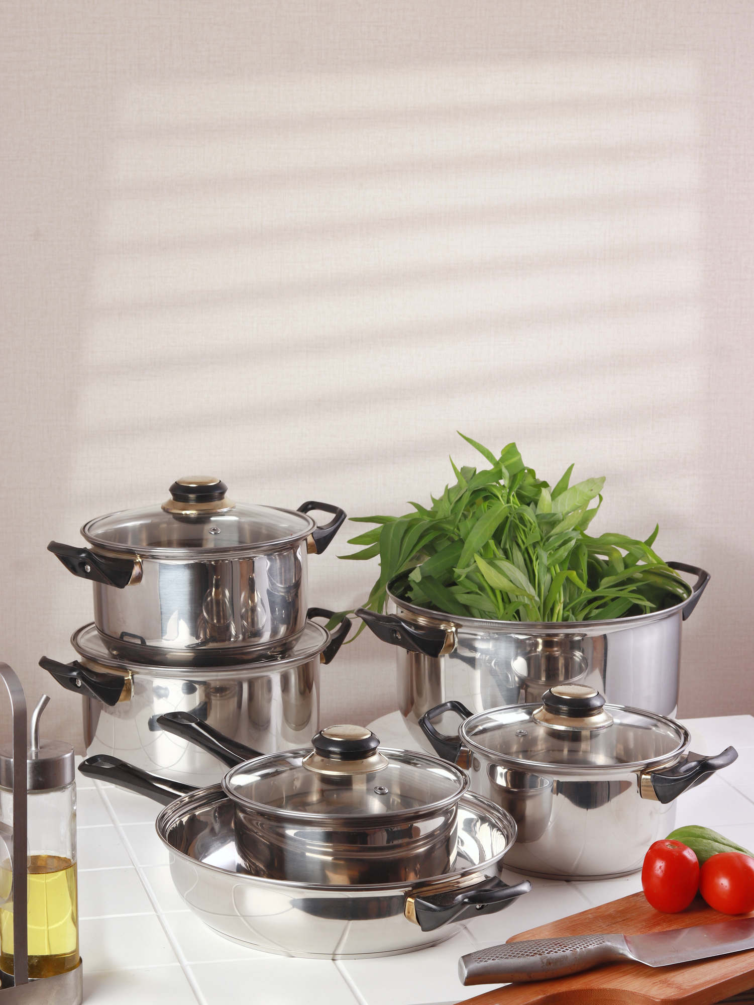 Lengkapi kebutuhan dapur Anda dengan Vicenza Cookware Set 12 pcs V612. Ini adalah panci set berbahan stainless steel premium yang dirancang khusus untuk membantu Anda mengolah berbagai hidangan lezat bagi keluarga tercinta.