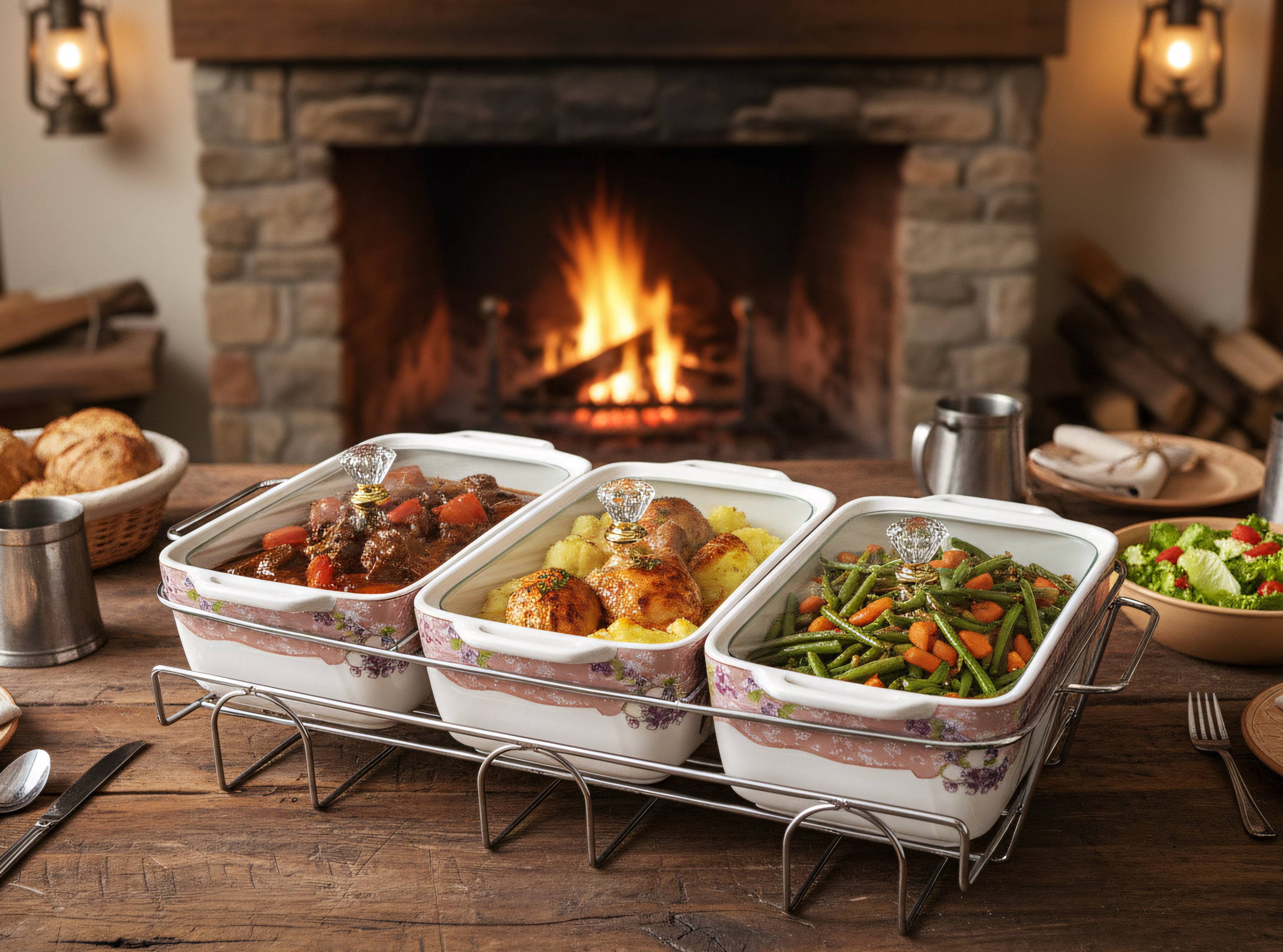 Dilengkapi Rak untuk mempermudah meletakkan dan memindahkan wadah saji. Pada bagian belakang Rak dilengkapi dengan dudukan ‘Stand part’ sehingga Tutup lebih mudah diletakkan pada bagian belakang wadah saji. Bagian bawah Rak juga dilengkapi lilin yang berfungsi untuk menjaga kehangatkan makanan (bukan diperuntukan untuk memasak/memanaskan makanan).