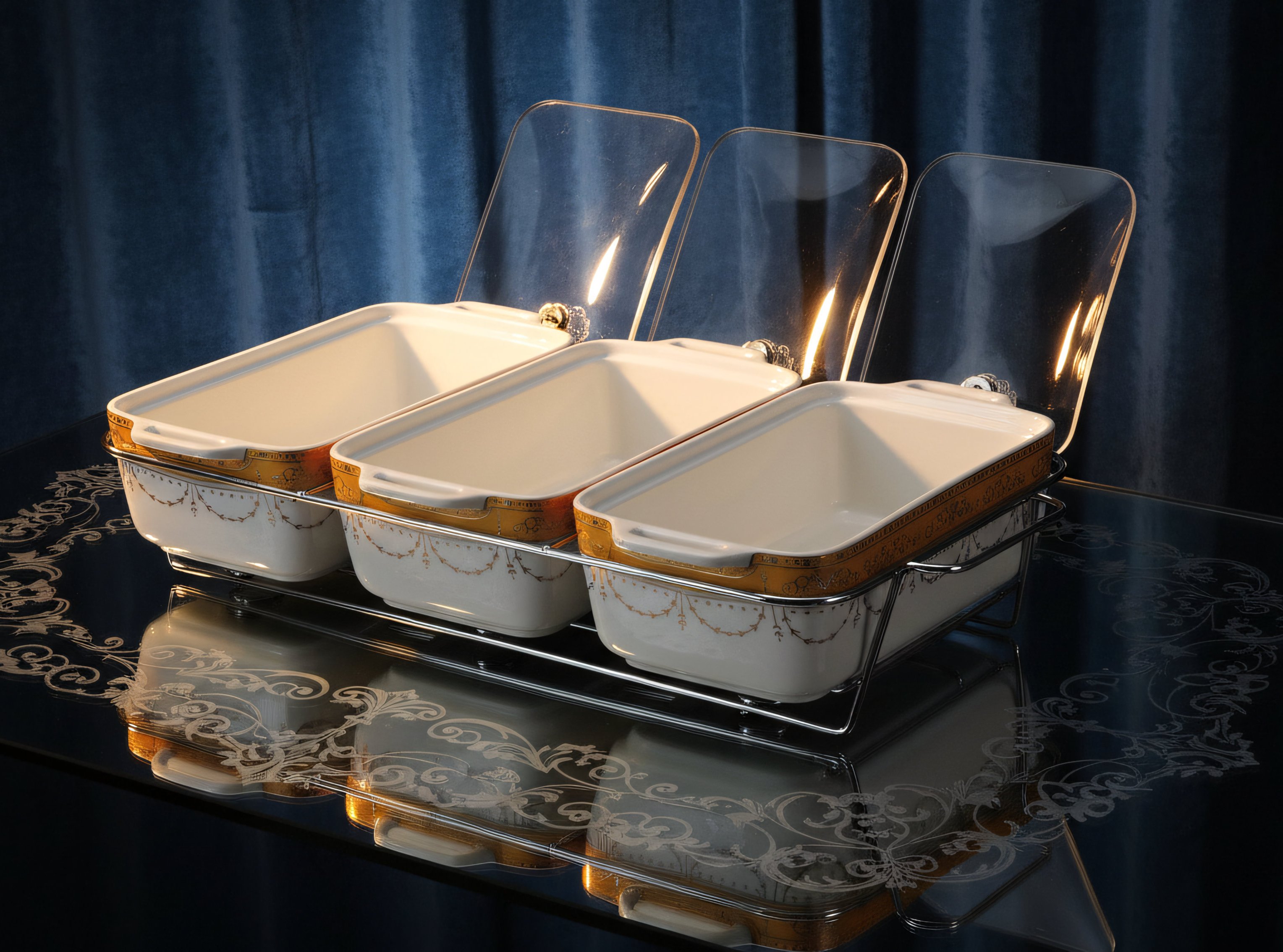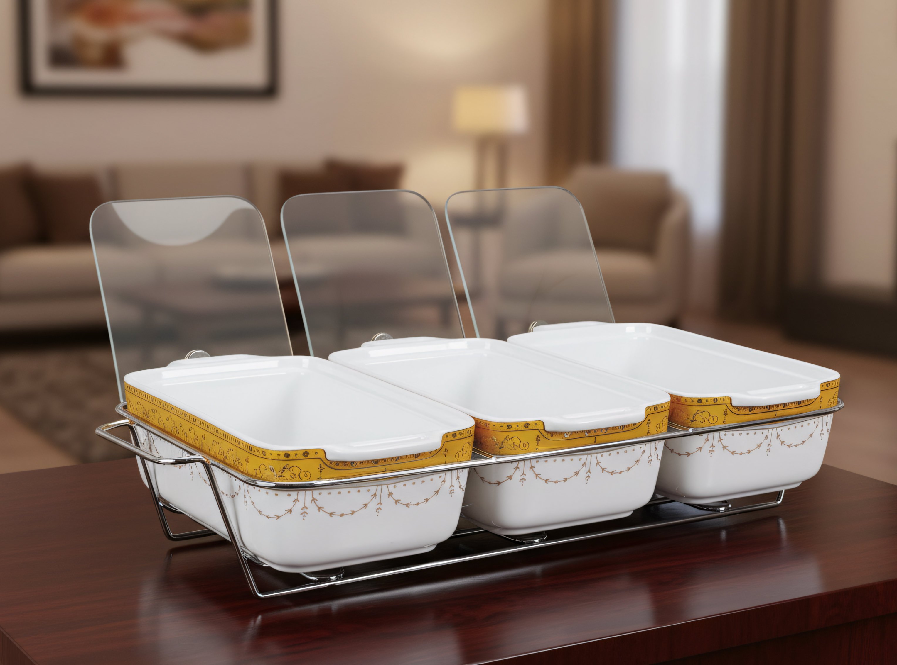 • Dilengkapi Rak untuk mempermudah meletakkan dan memindahkan wadah saji. Pada bagian belakang Rak dilengkapi dengan dudukan ‘Stand part’ sehingga Tutup lebih mudah diletakkan pada bagian belakang wadah saji. Bagian bawah Rak juga dilengkapi lilin yang berfungsi untuk menjaga kehangatkan makanan (bukan diperuntukan untuk memasak/memanaskan makanan).