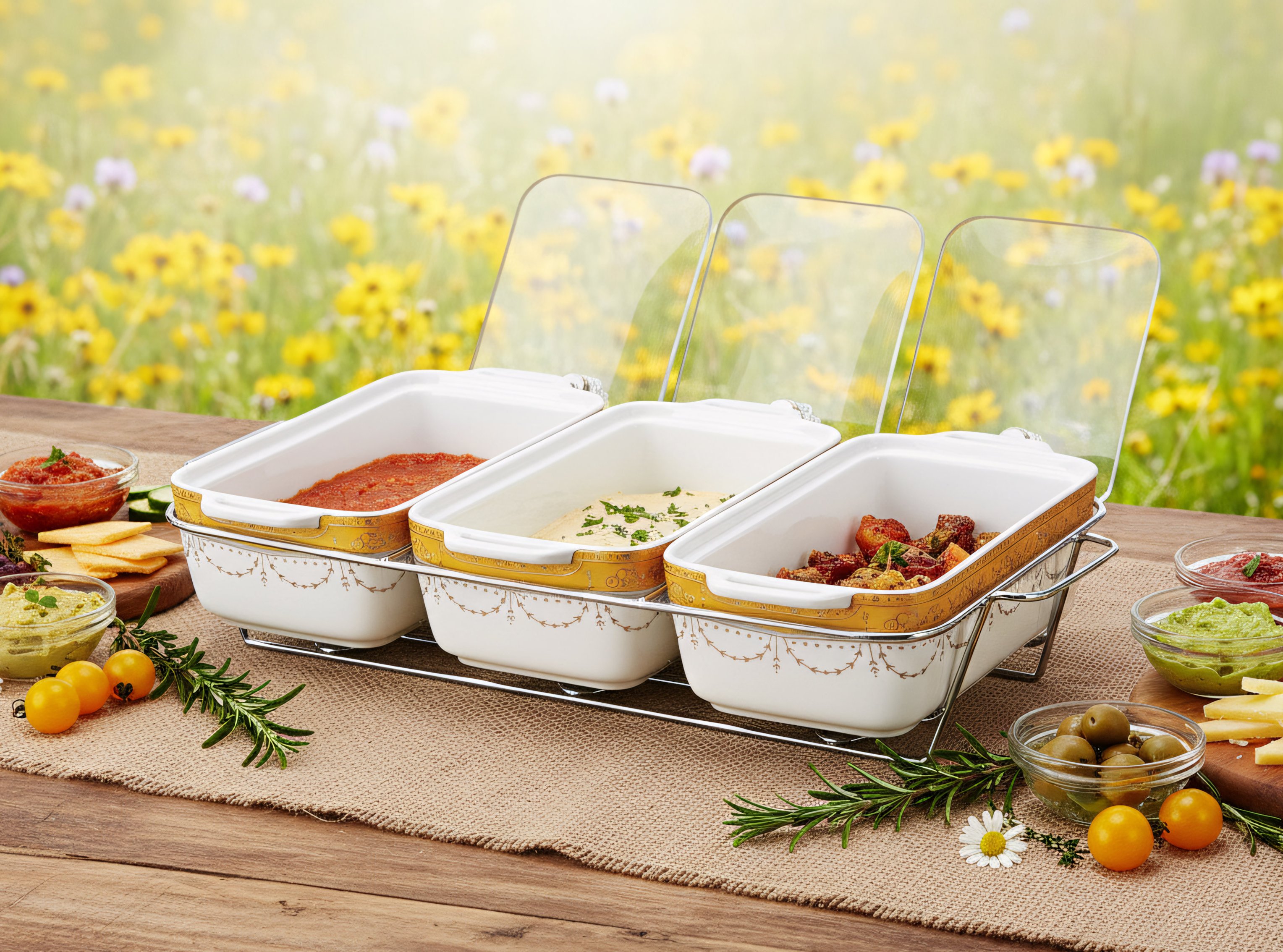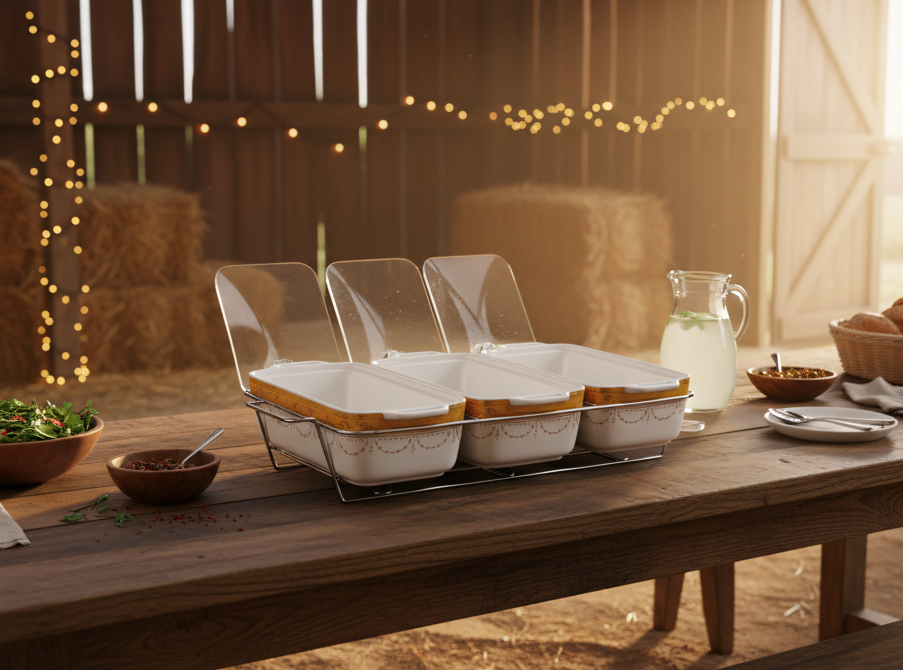 • Wadah saji terbuat dari bahan Porcelain berkapasitas besar (1.3L per wadah) sehingga cukup untuk menampung makanan dalam jumlah banyak.