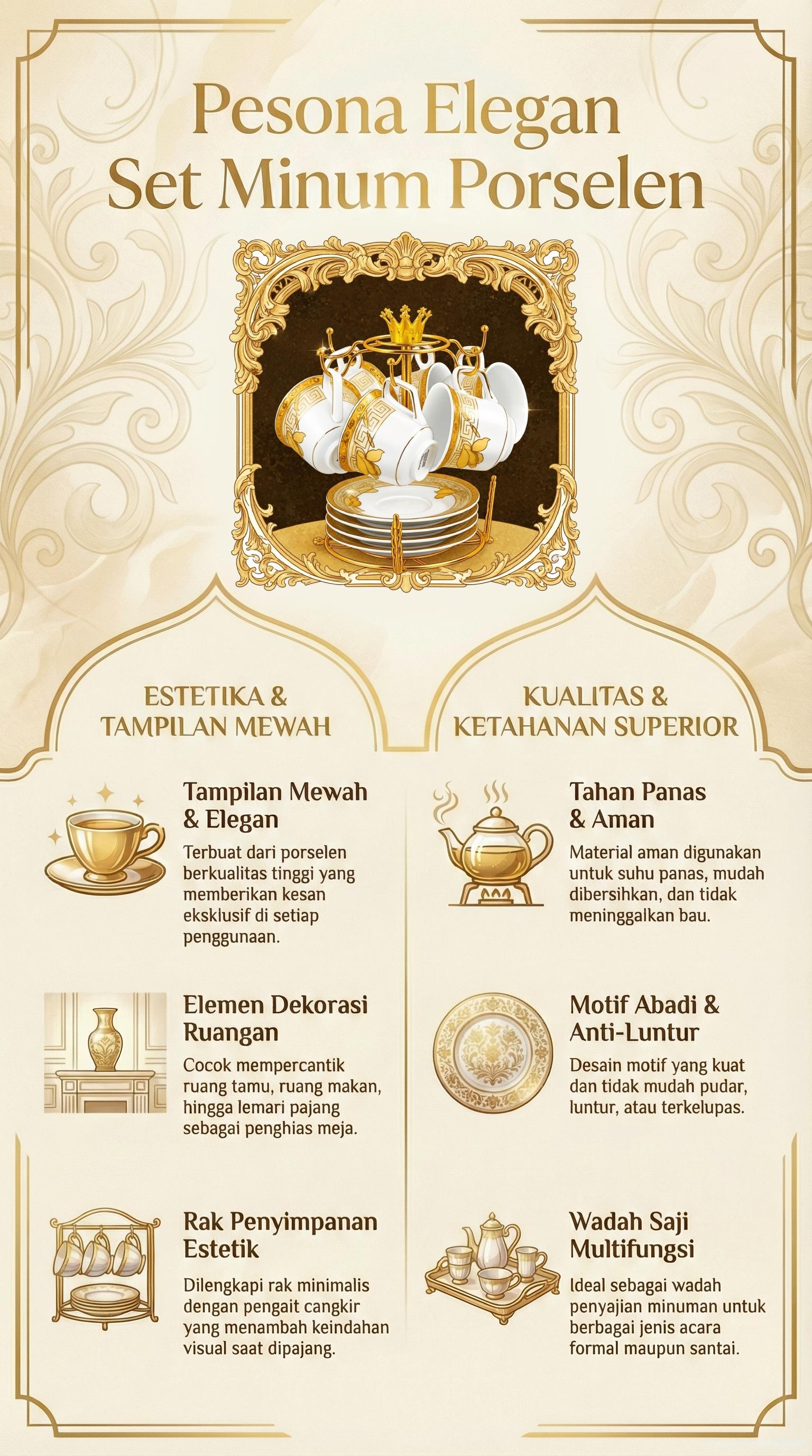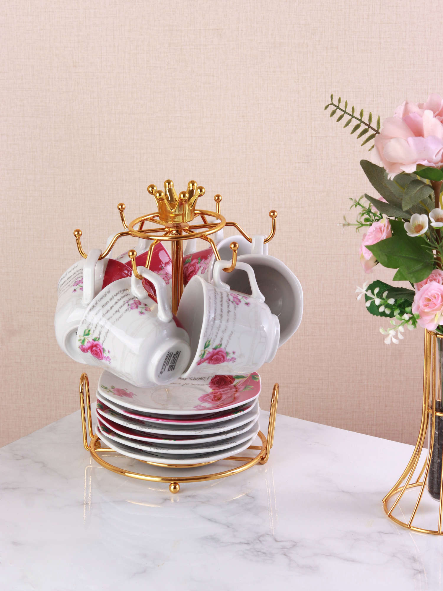 Nikmati waktu bersantai maupun bercengkerama bersama orang tercinta dengan Cangkir dan Lepek CC93 (cup and saucer) dari Vicenza! Dibuat dari bahan dasar porselen premium dengan balutan motif Eternity yang menawan. Dalam satu set terdiri dari 6 buah cangkir, 6 buah lepek, dan rak yang memadukan fungsi praktis dan desain elegan. Kehadiran set cangkir ini dapat mempercantik ruangan dan tampilan meja. Semua terasa semakin sempurna dengan Vicenza!