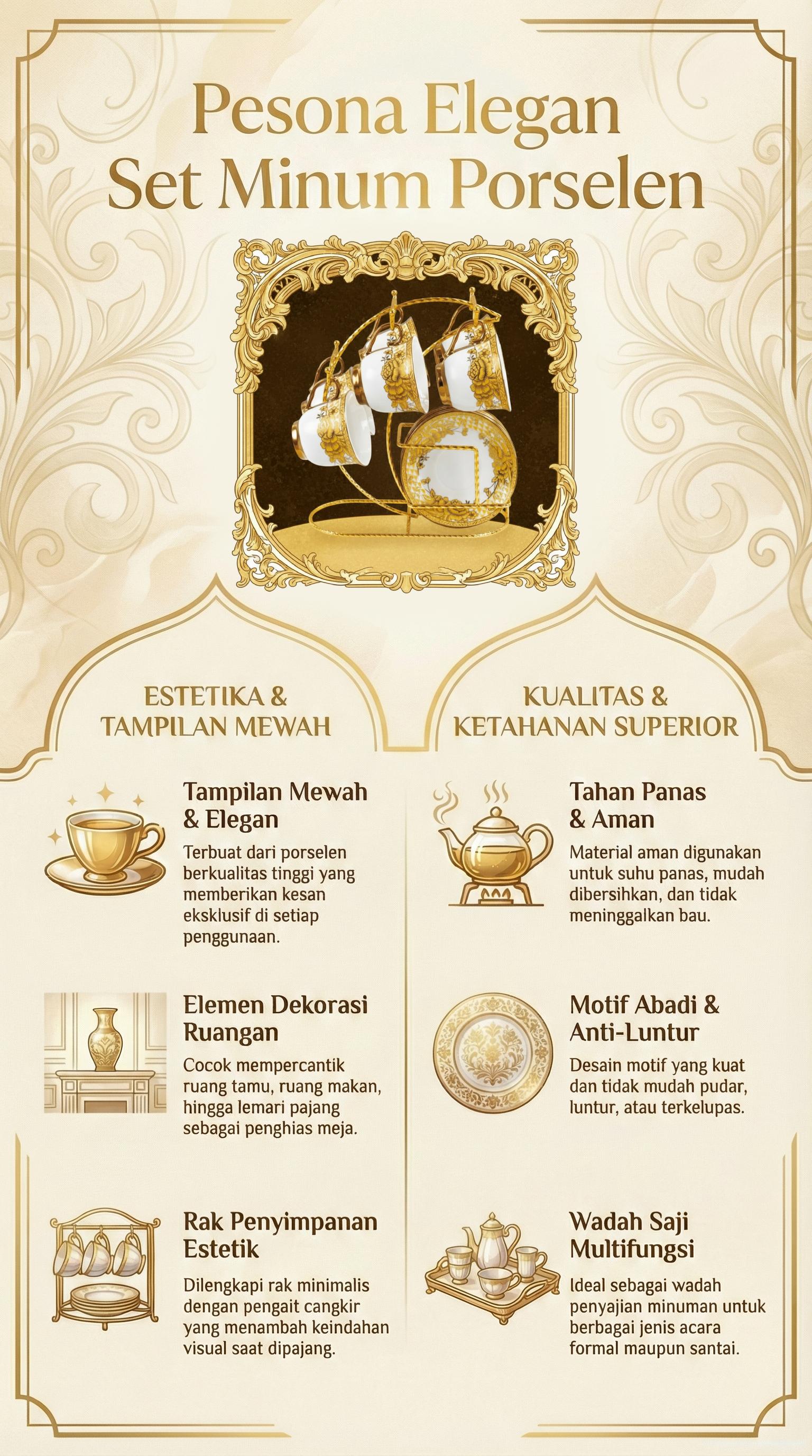 Bahan porselen premium, kualitas terbaik, tahan terhadap suhu panas, dan mudah dibersihkan