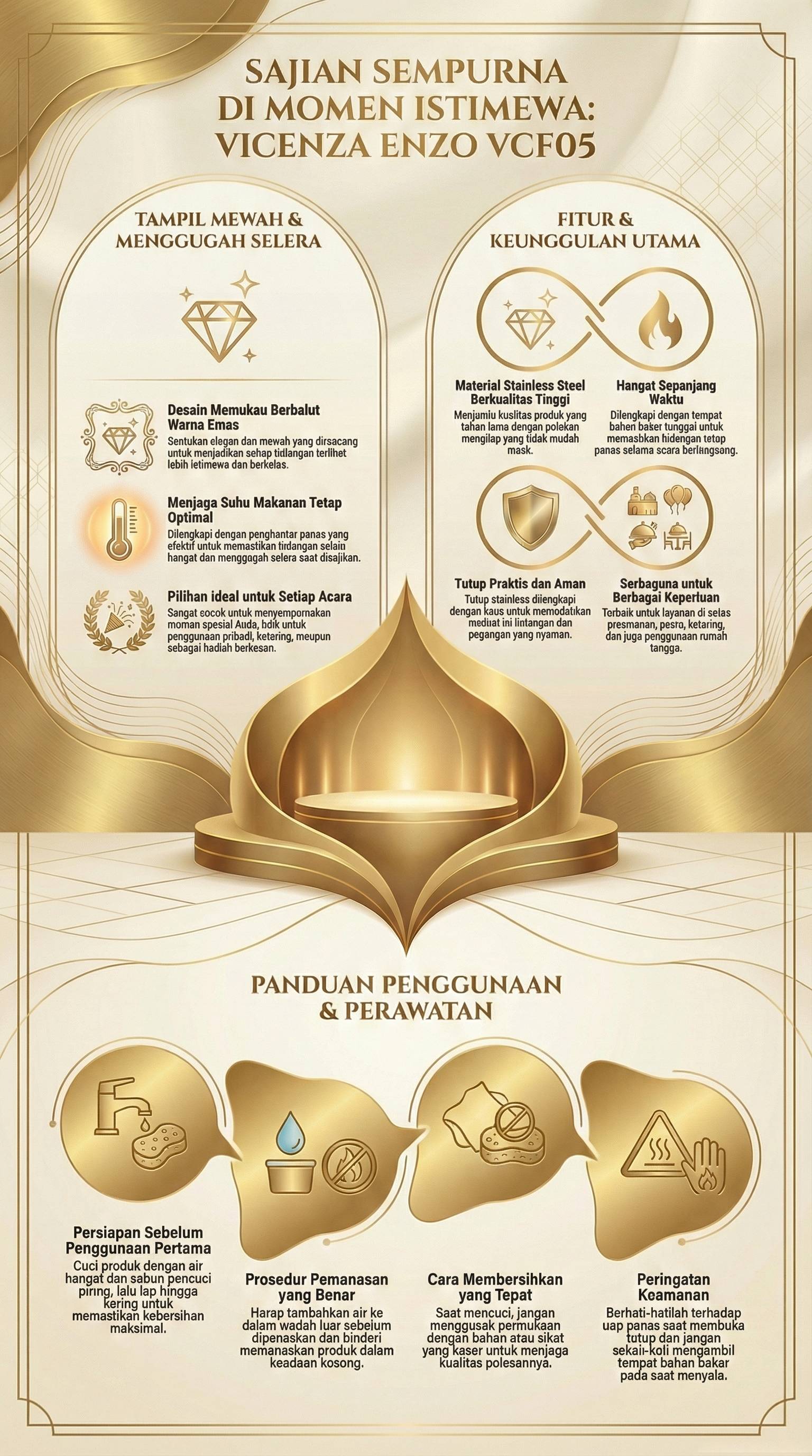 Sajikan hidangan dengan VCF05 Chafing Dish Enzo yang siap menjadi pilihan sempurna di setiap momen istimewa Anda!