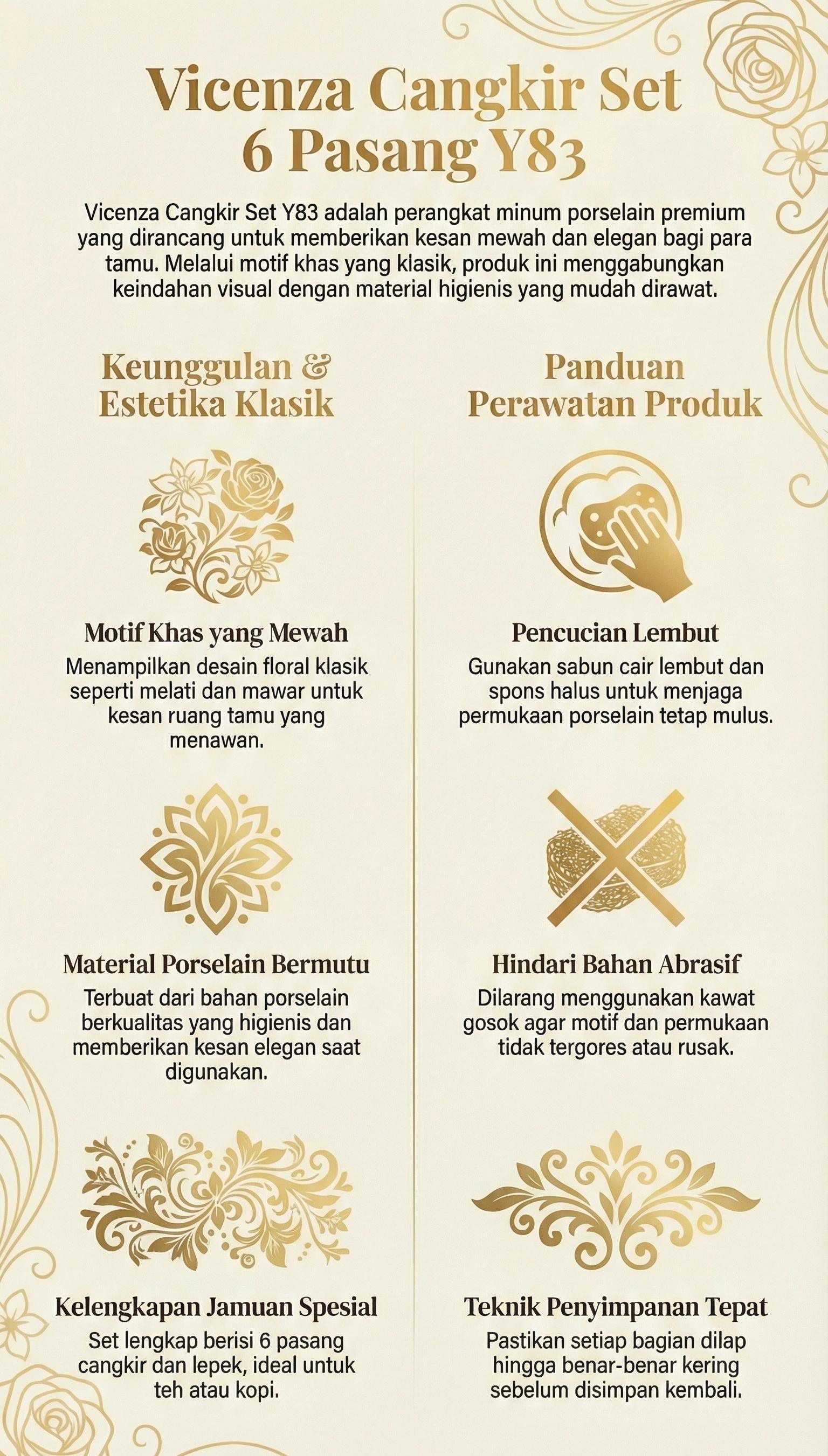 Terdiri dari 6 cangkir dan 6 lepek porselain elegan