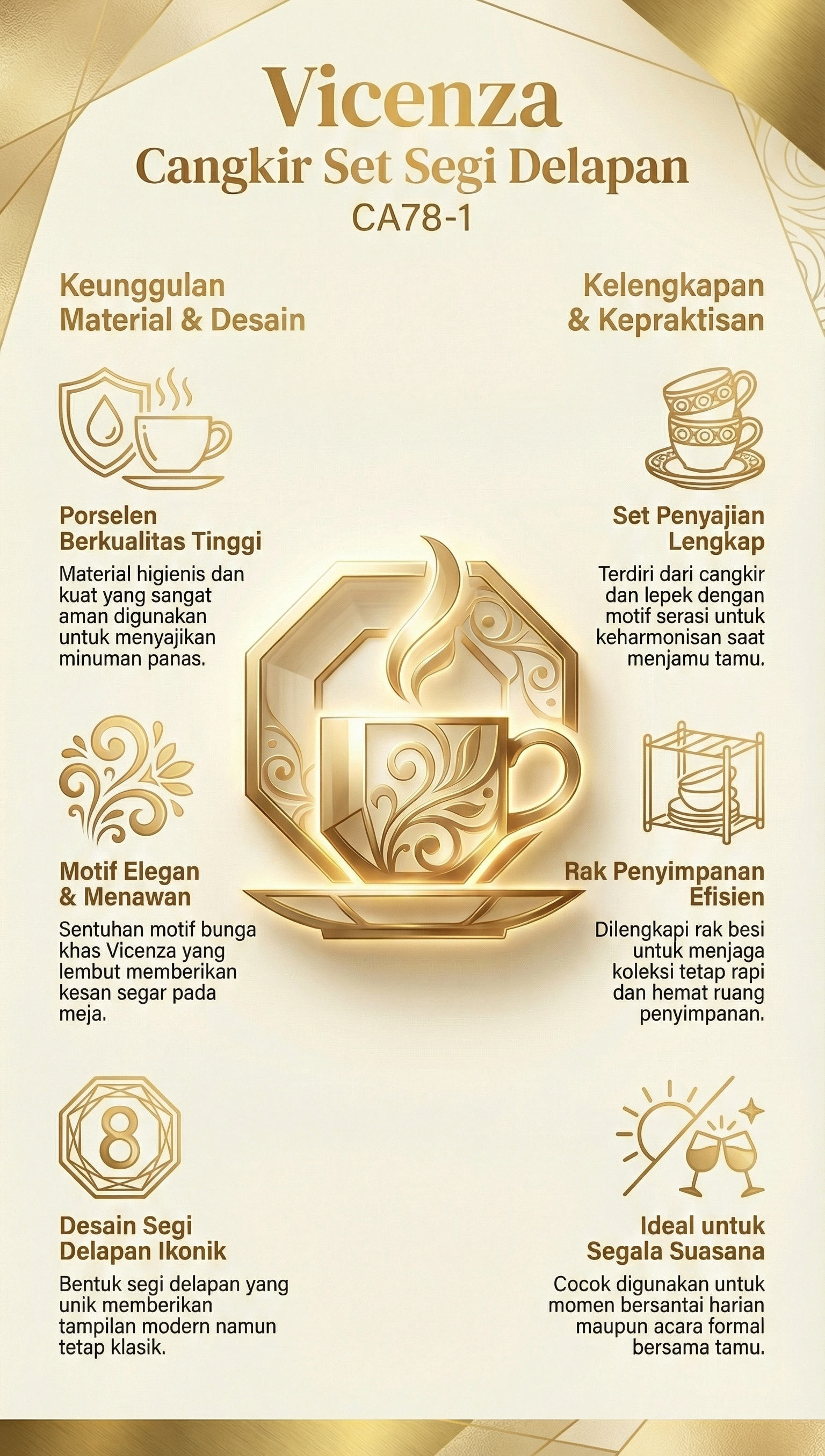 Vicenza Cangkir Set Kopi dan Teh Segi Delapan Ayana CA78-1