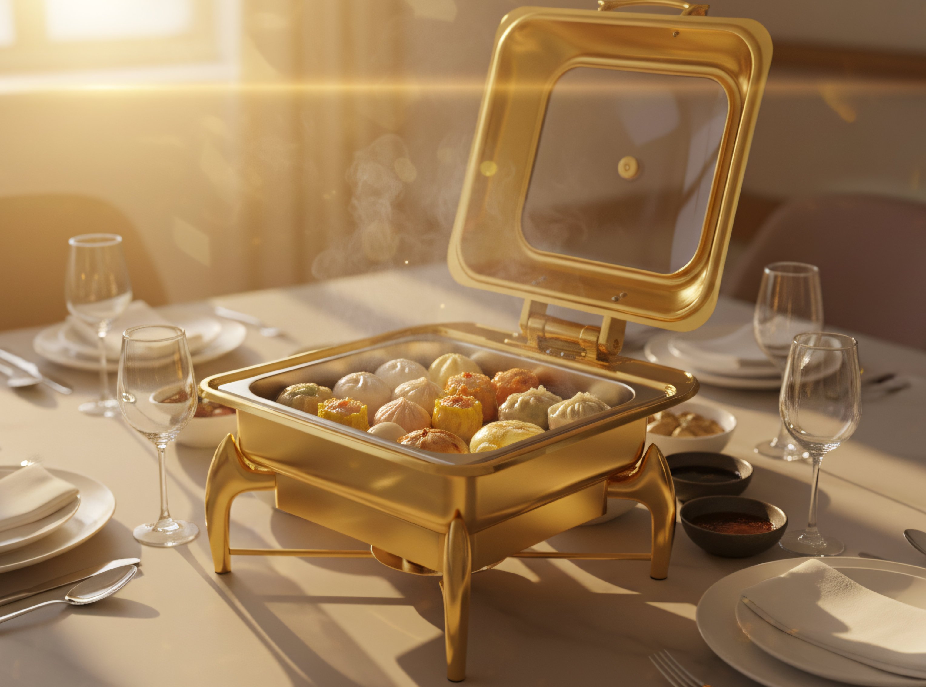 Chafing dish dapat terbuka dan tertutup dengan stabil