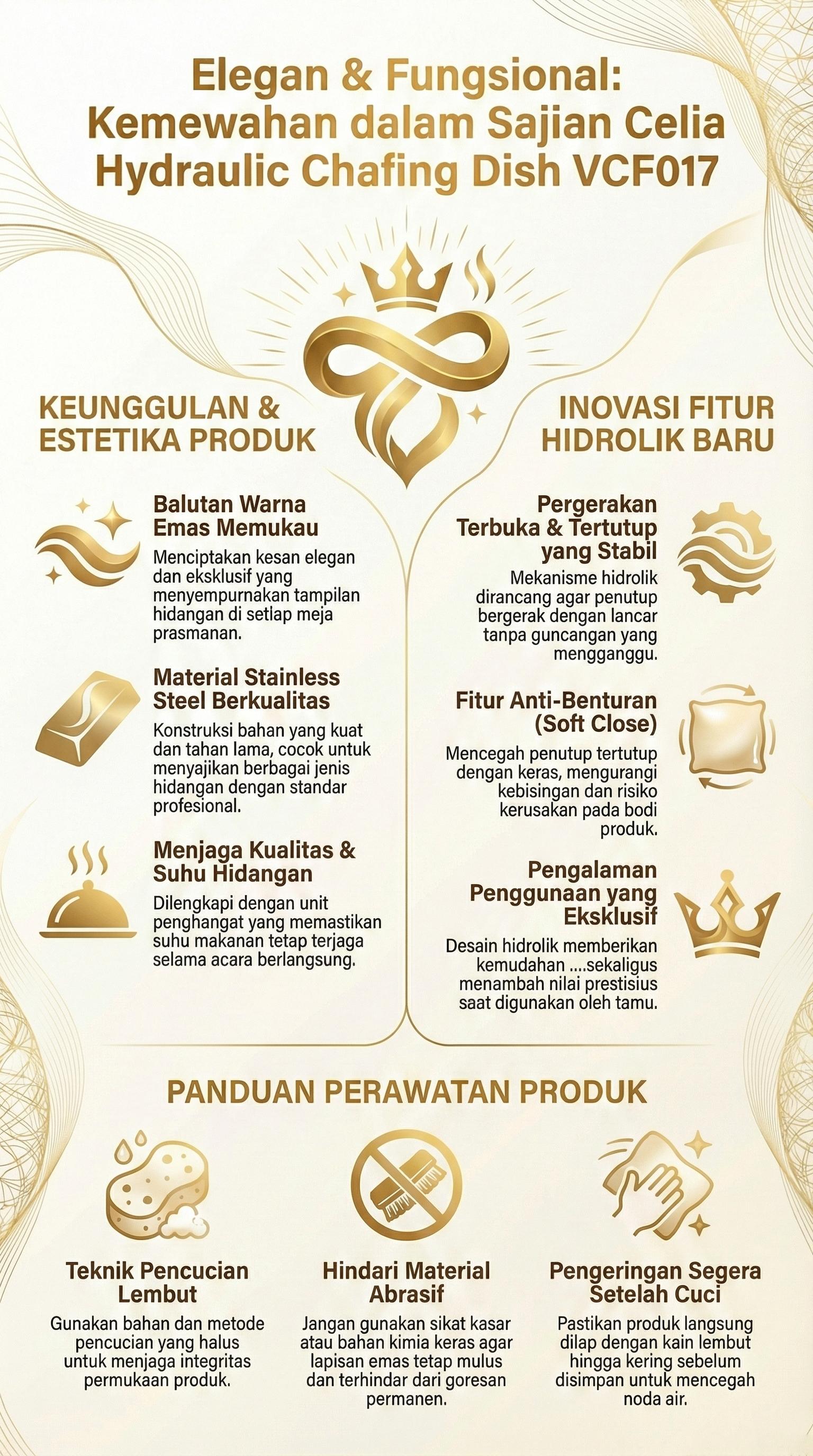 Sajikan hidangan dengan tampilan yang sempurna dan kaya cita rasa dengan Celia Hydraulic Chafing Dish VCF017 dari Vicenza!