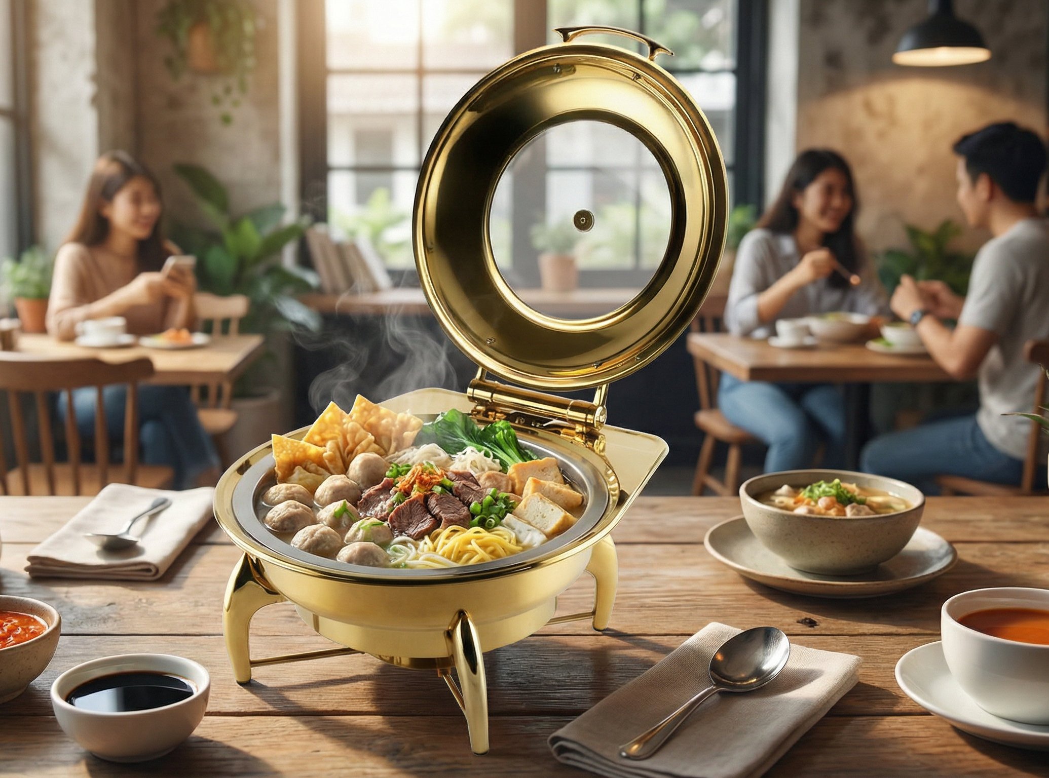 Chafing dish dapat terbuka dan tertutup dengan stabil