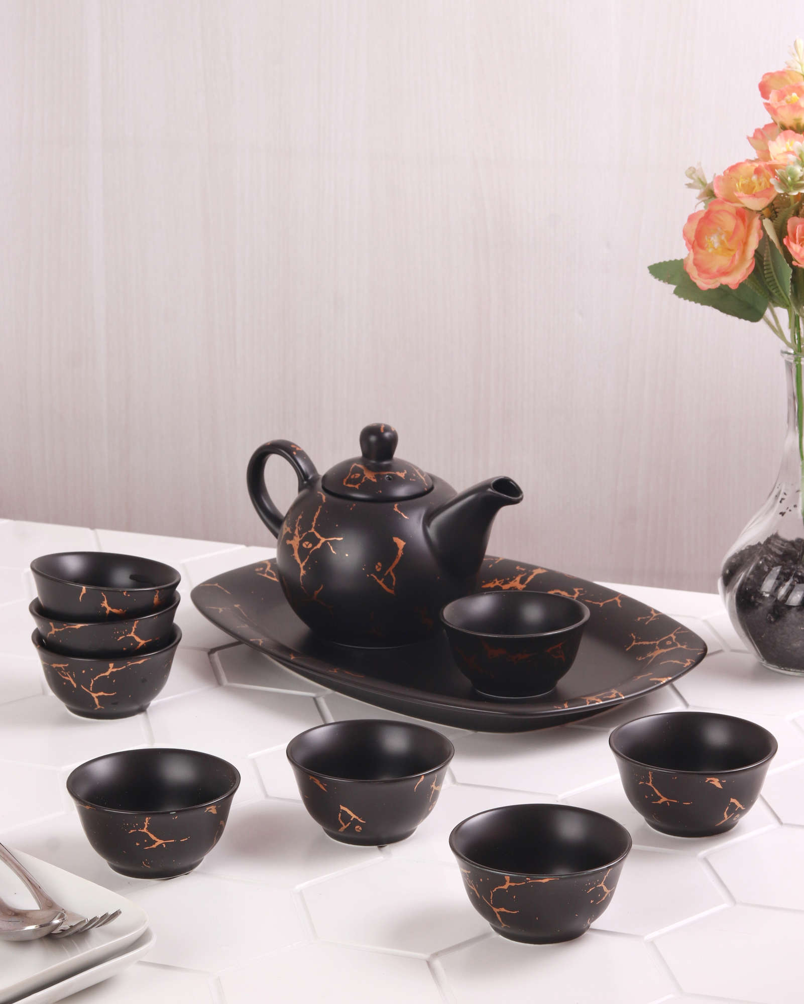 Vicenza Mangkuk Pempek dan Teko Cuko Set Motif Marmer - Hitam BM902