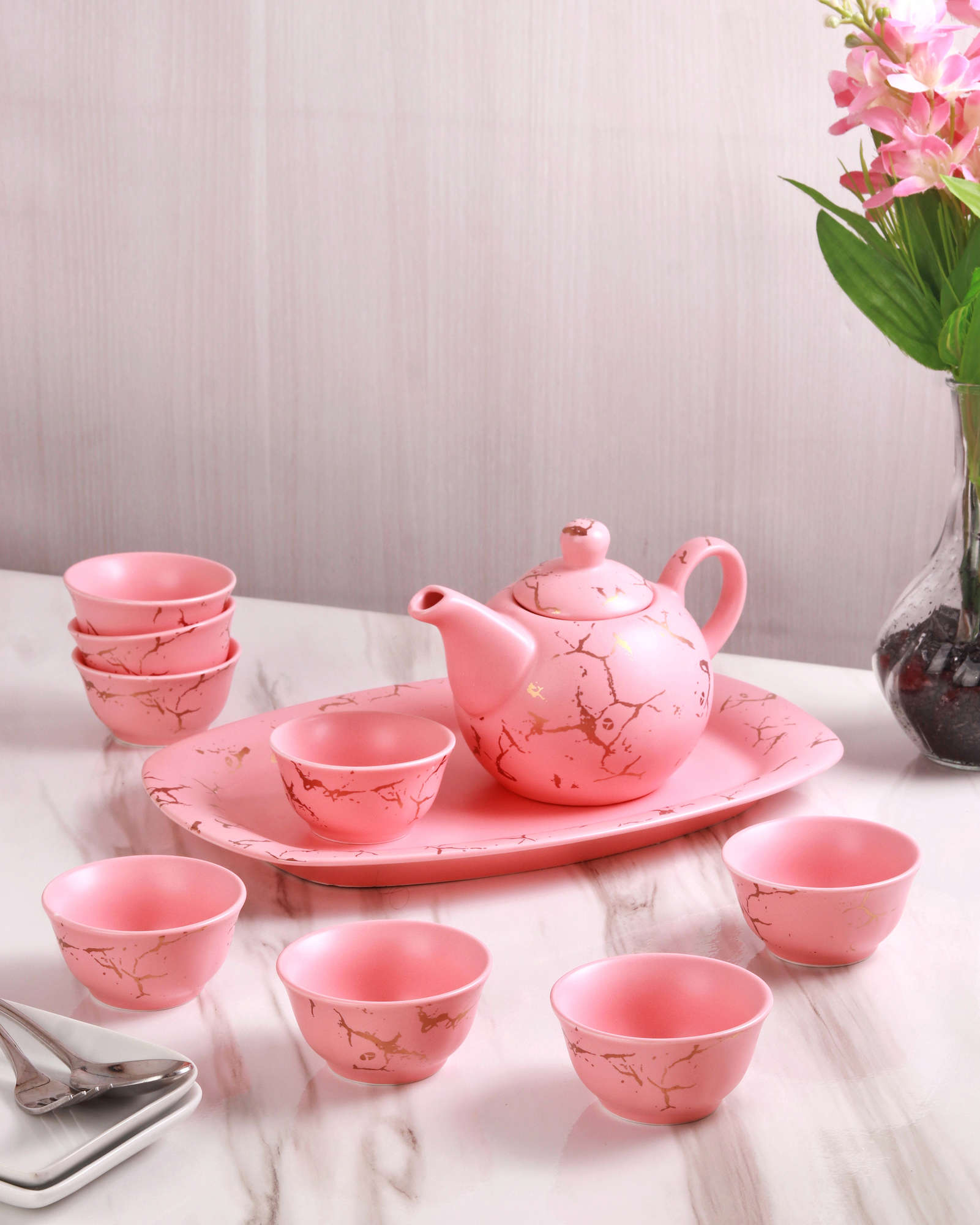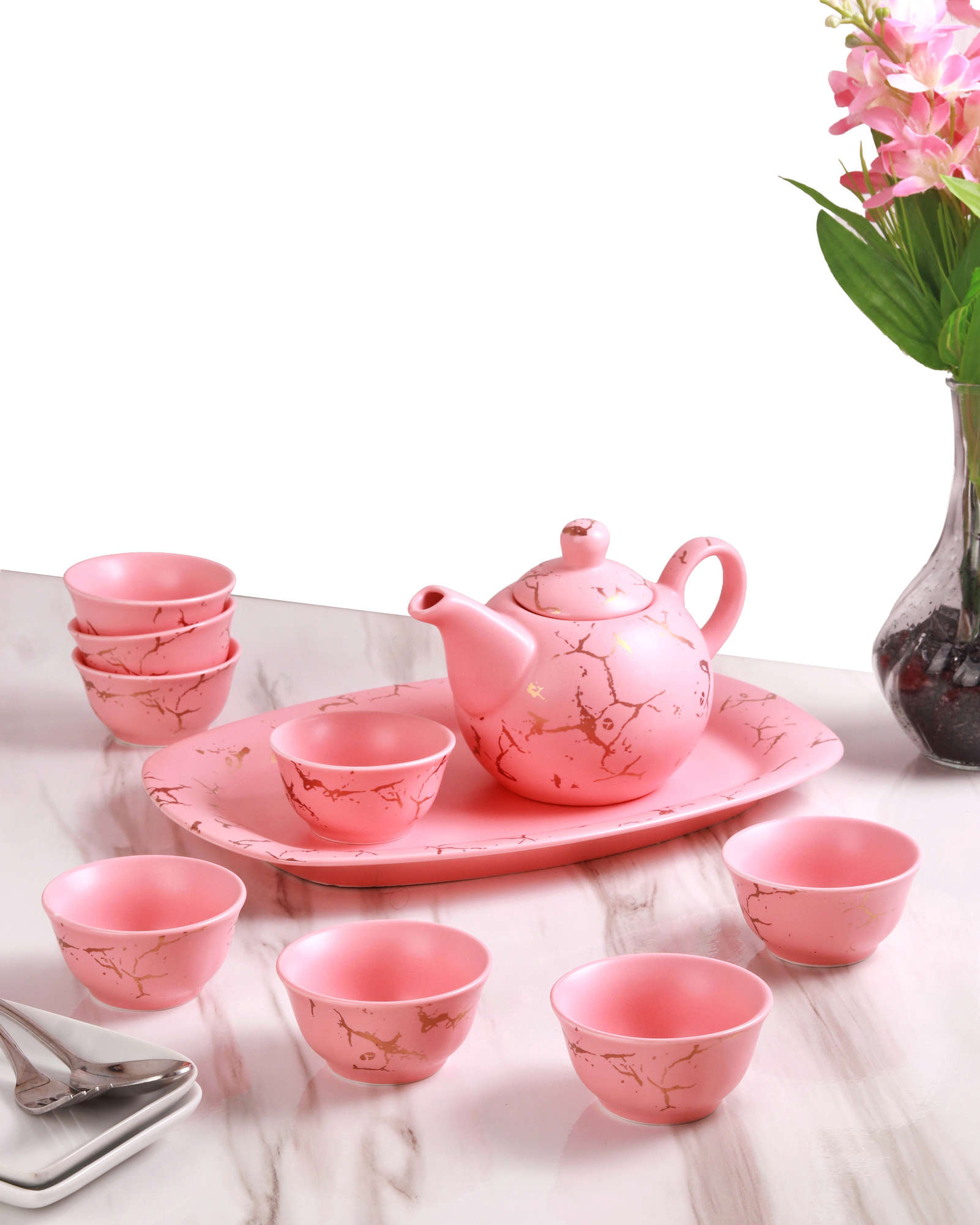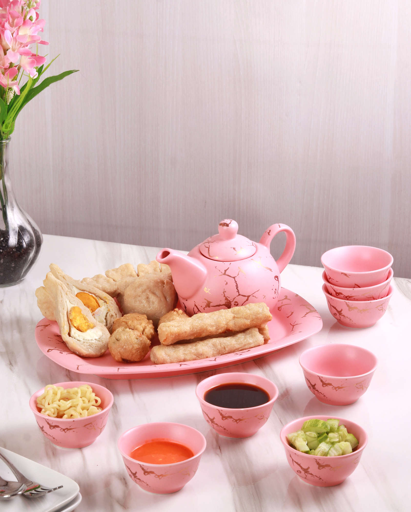 Vicenza Mangkuk Pempek dan Teko Cuko Set Motif Marmer - Pink BM902