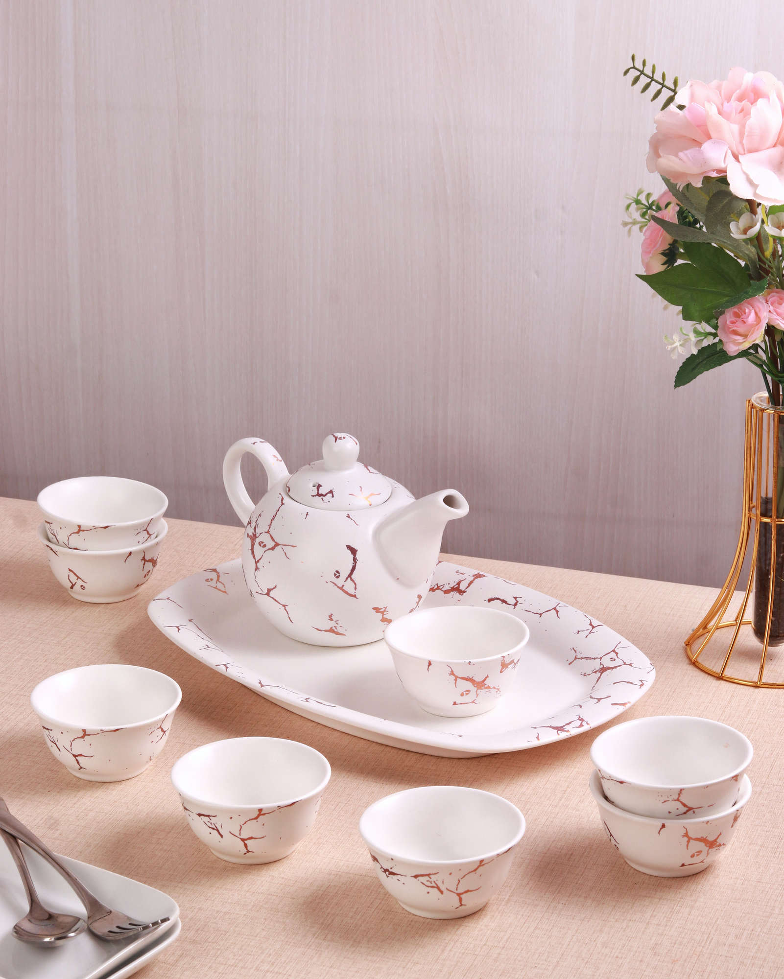 Vicenza Mangkuk Pempek dan Teko Cuko Set Motif Marmer - Putih BM902