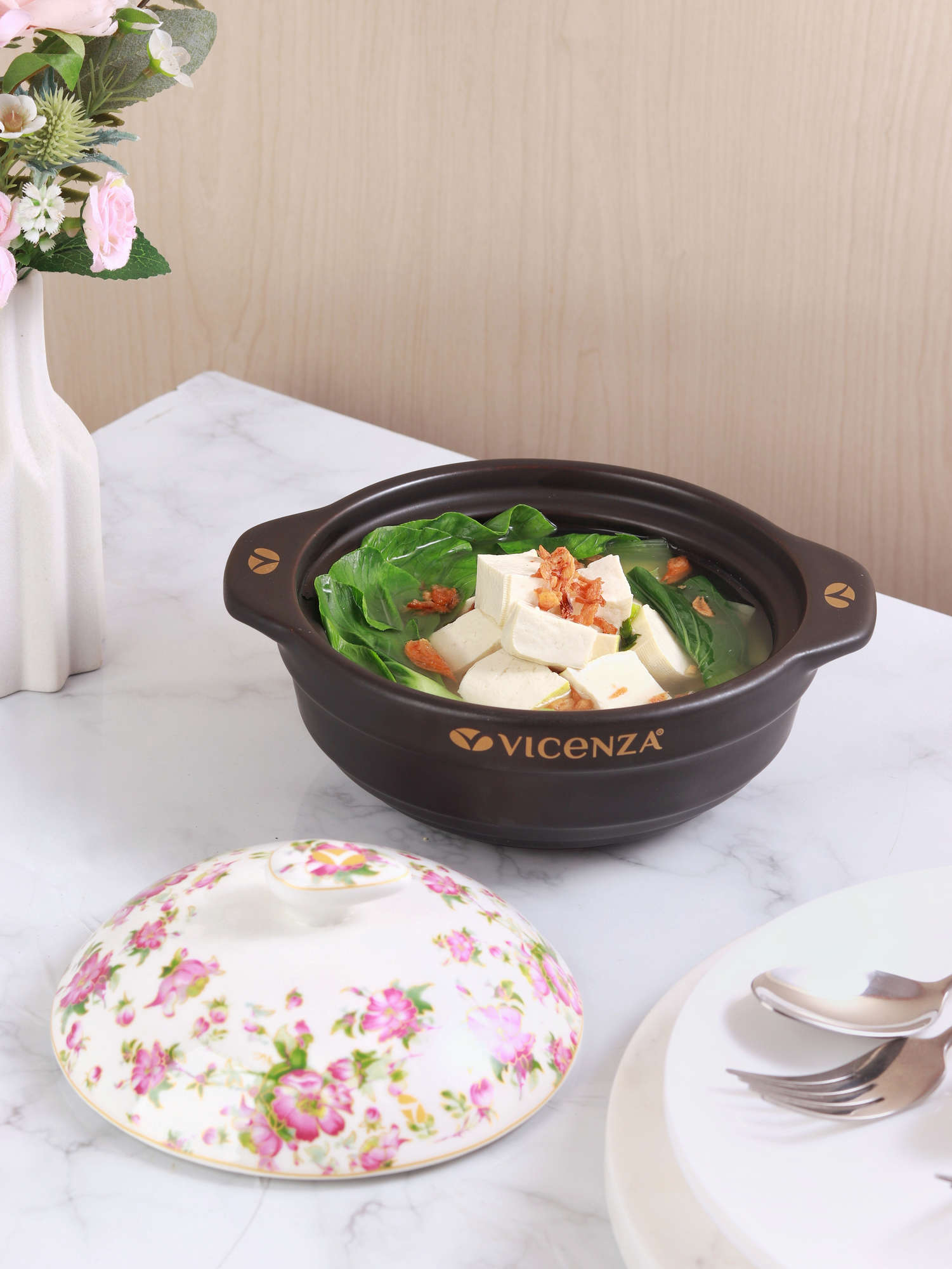 Lengkapi perlengkapan saji Anda dengan Vicenza Mangkuk Sapo Motif Melati BA900, tersedia eksklusif hanya di Toko Resmi Vicenza.