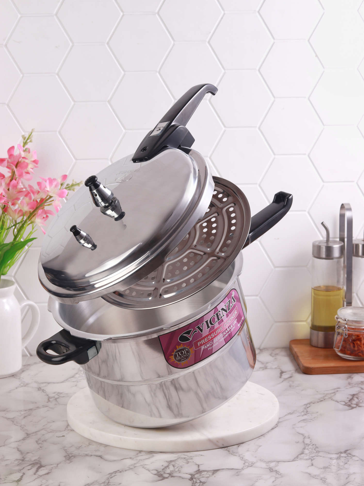 Masak lebih cepat dan hemat dengan V324ES Panci Presto Stainless dari Vicenza! Hadir dengan kualitas material terbaik dan performa yang unggul, stainless steel pressure cooker dari Vicenza ini berhasil meraih predikat TOP BRAND AWARD 2015.
