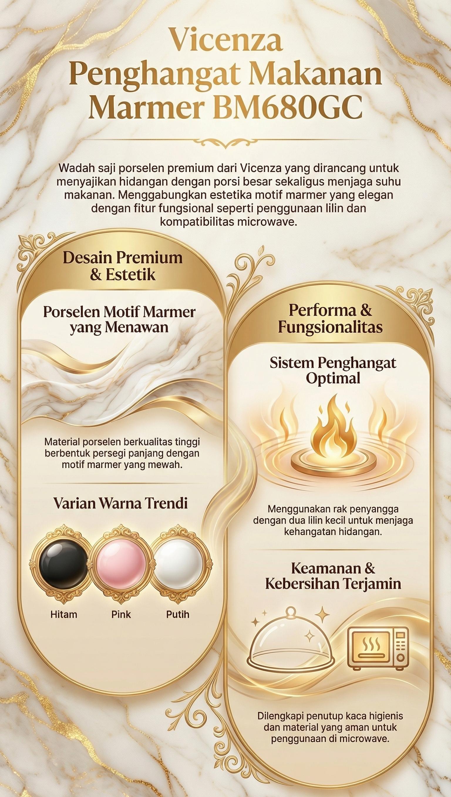 Vicenza Penghangat Makanan Marmer Putih BM680GC