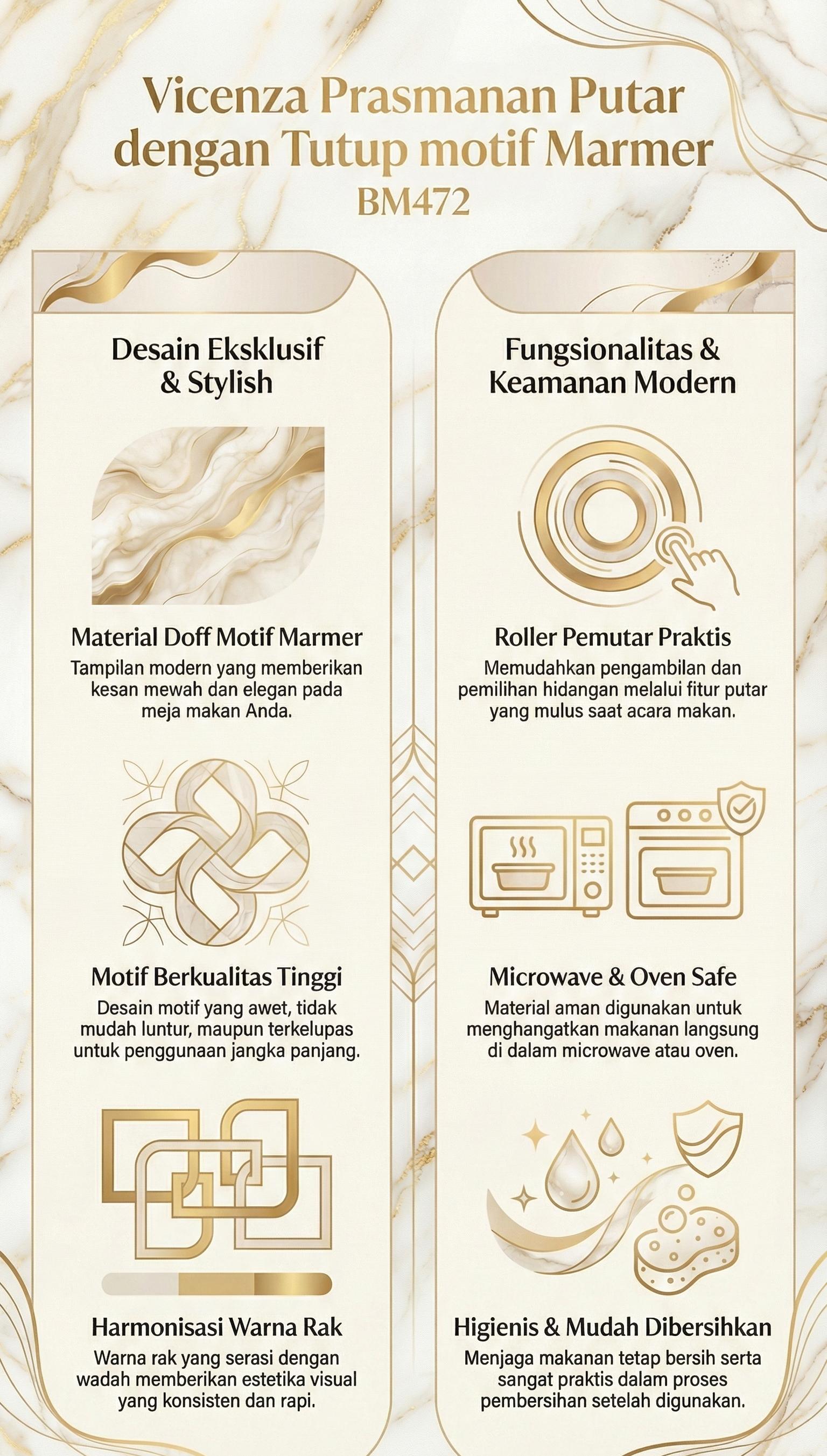Dilengkapi dengan Roller atau pemutar untuk mempermudah dalam penyuguhan, sehingga memudahkan dalam mengambil dan memilih hidangan.