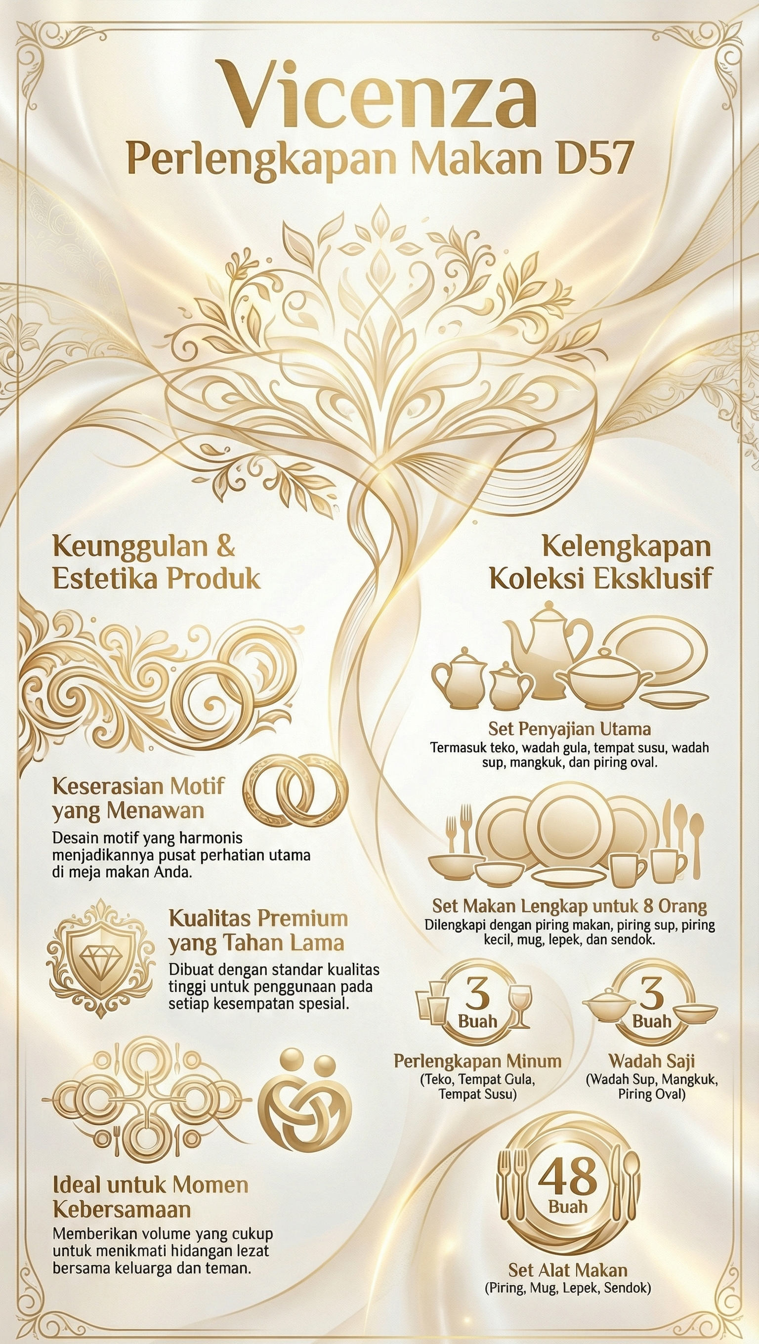 Hadirkan kombinasi keindahan dan fungsi maksimal dengan Vicenza Perlengkapan Makan Camelia D57. Beli resmi di Toko Vicenza.