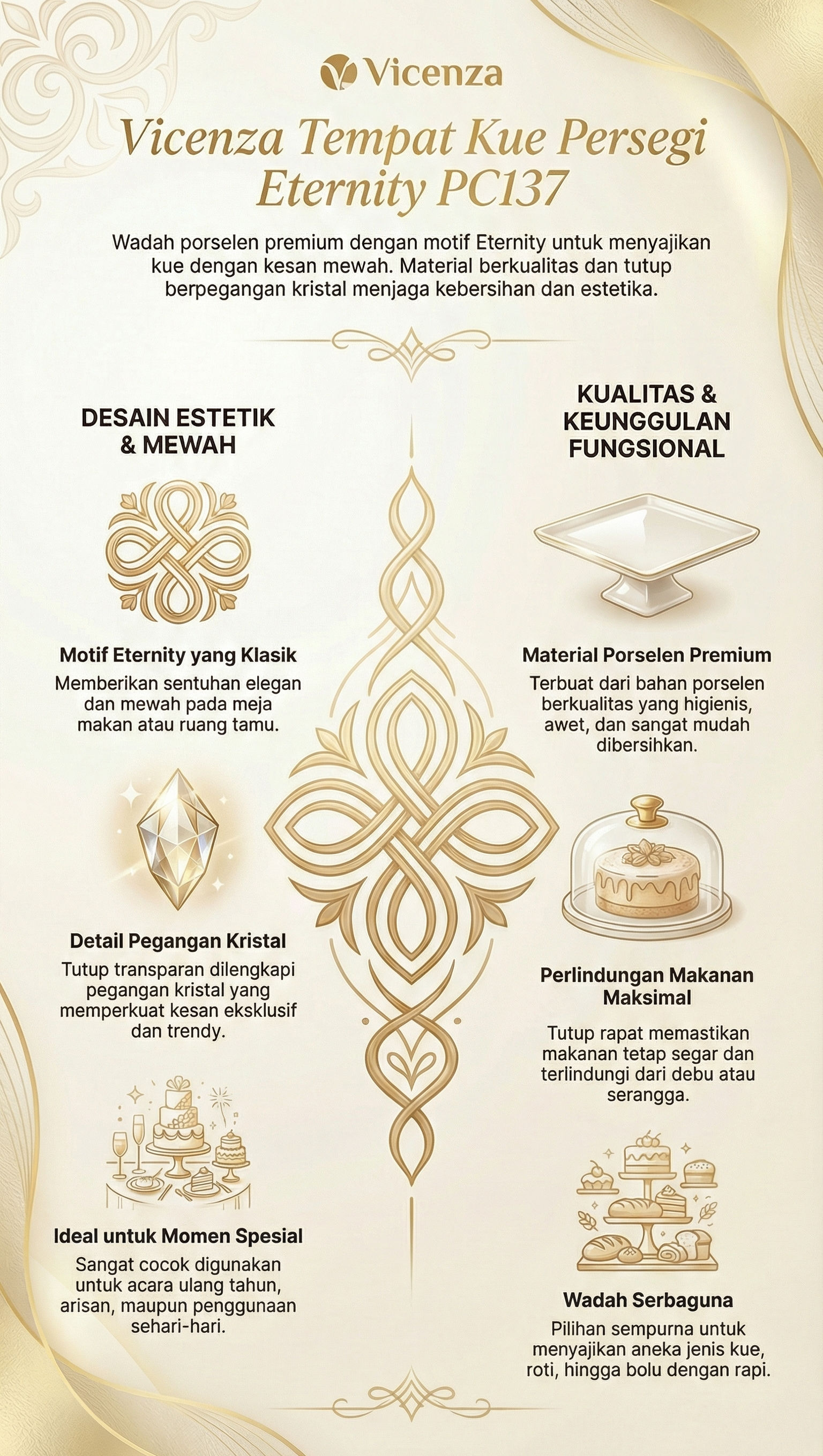 Lengkapi koleksi rumah Anda dengan Vicenza Tempat Kue Persegi Motif Eternity PC137, tersedia eksklusif hanya di Toko Resmi Vicenza.