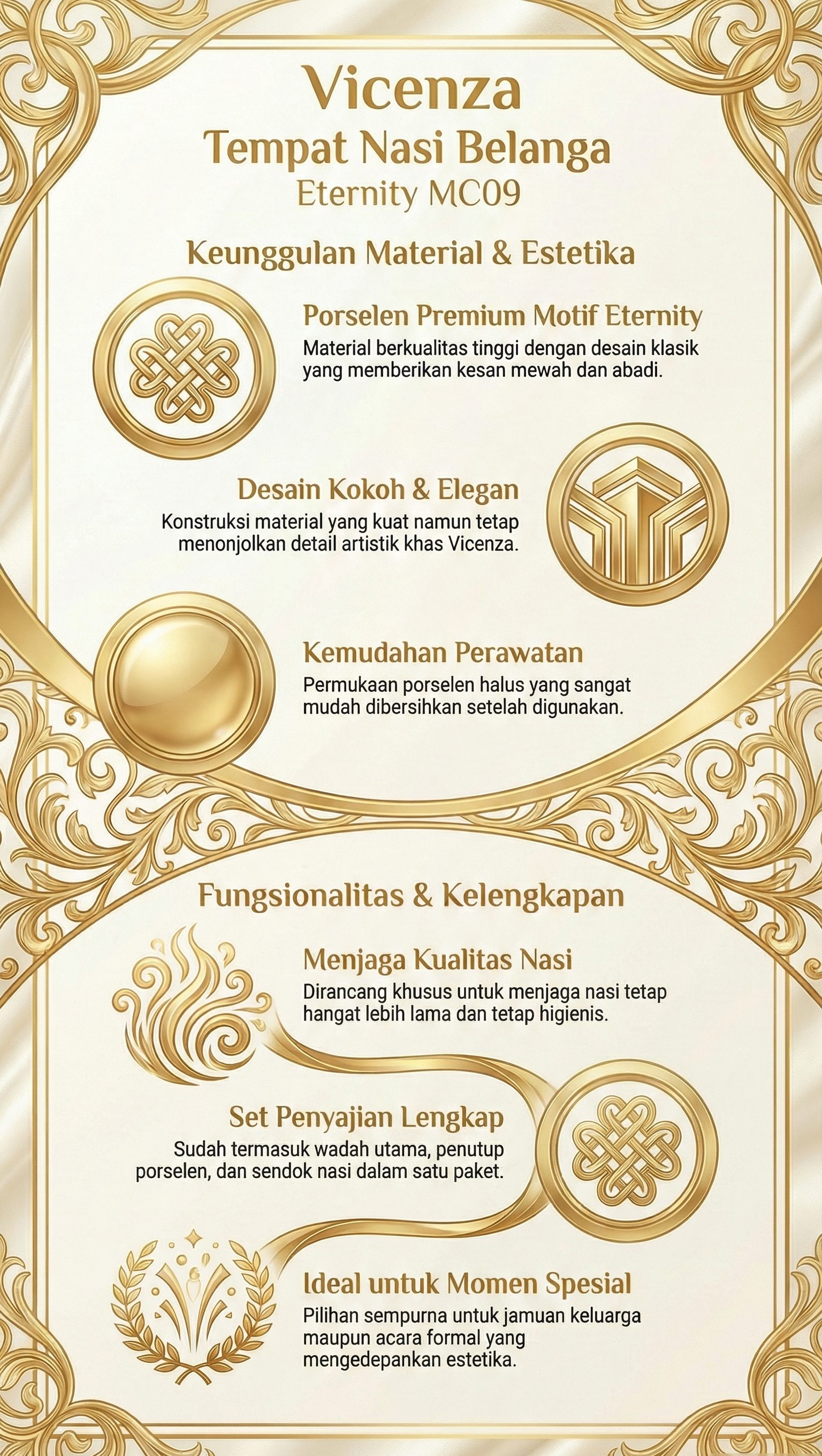 Porselen premium dengan motif Eternity elegan.