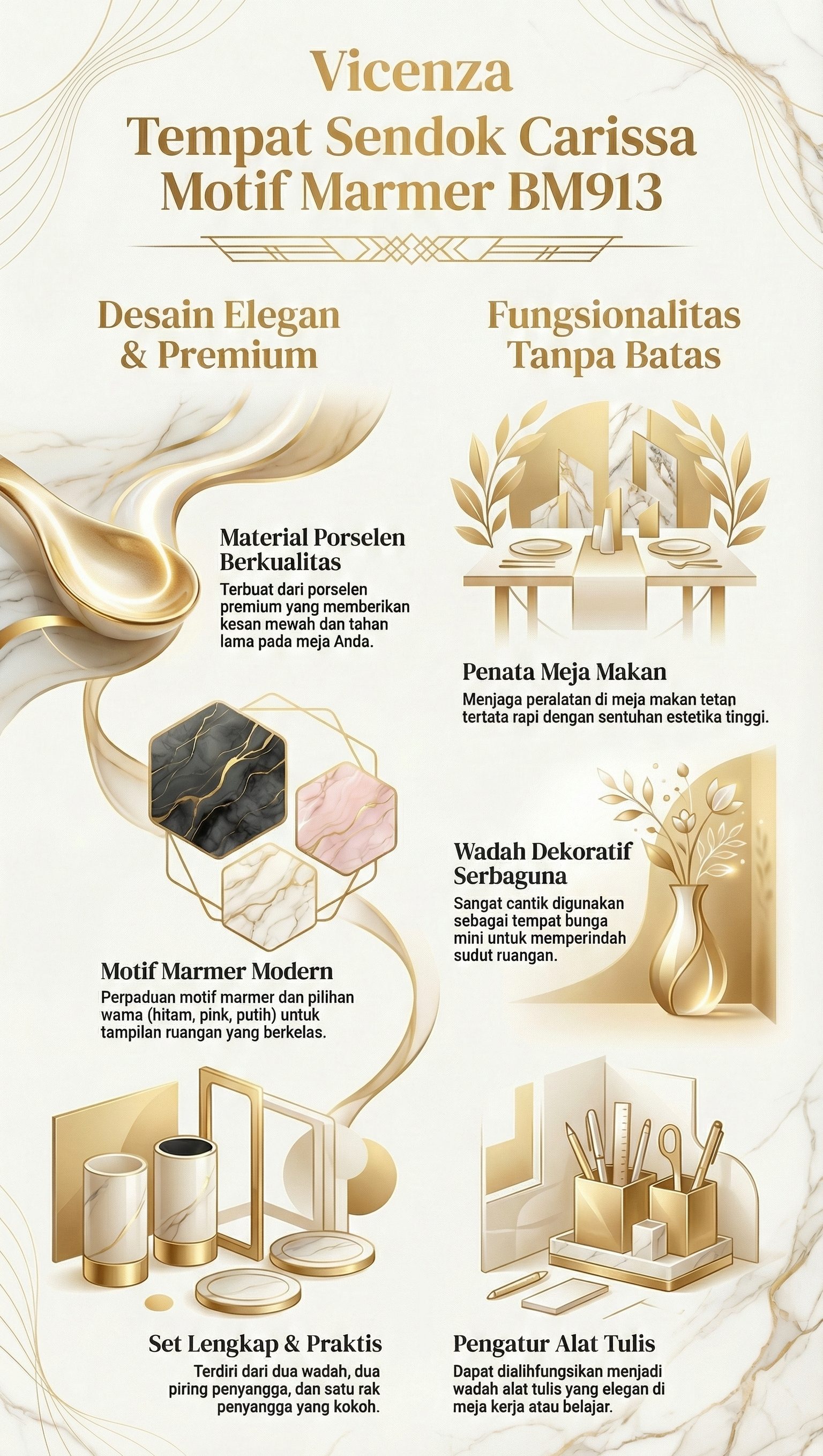 Lengkapi koleksi perlengkapan makan Anda dengan Vicenza Tempat Sendok Putih Carissa Motif Marmer BM913, hanya di Toko Resmi Vicenza.