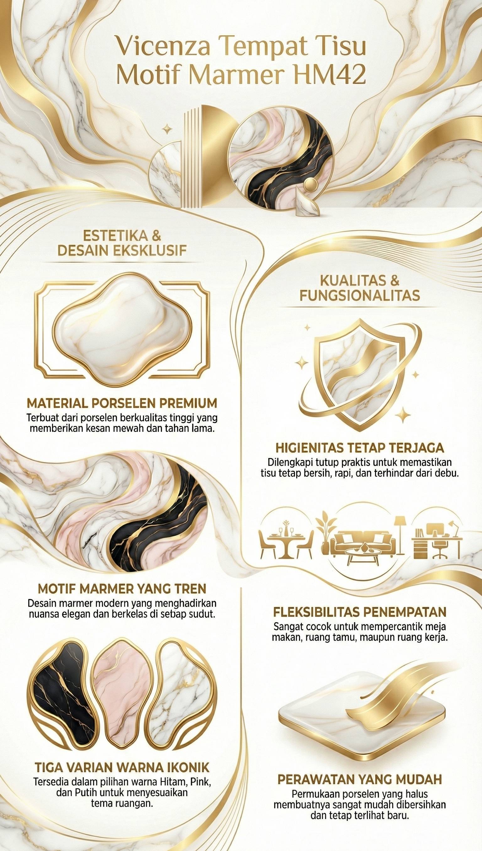 Lengkapi koleksi rumah Anda dengan Vicenza Tempat Tisu Putih Motif Marmer HM42, tersedia eksklusif hanya di Toko Resmi Vicenza.
