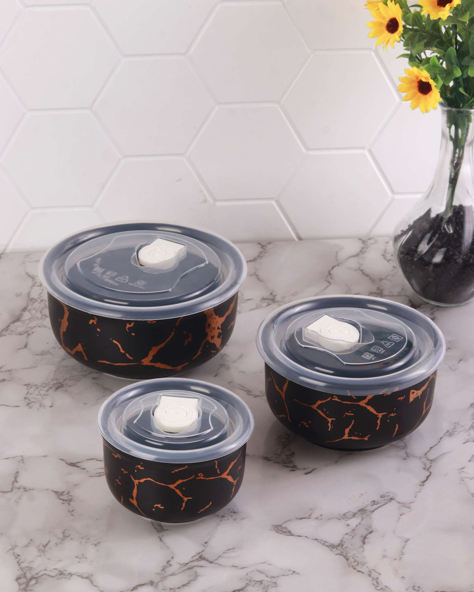 Wadah makanan dari Vicenza hadir dengan penampilan baru! Dengan menggunakan wadah makanan Vicenza Wadah Makanan Motif Marmer – Hitam BM780bermotif marmer, bisa menjadi solusi yang praktis, fungsional, dan elegan bagi Anda dalam menyimpan makanan maupun membawa bekal. Lebih higienis, sehat, dan tampil dengan menarik! Tersedia dalam tiga ukuran wadah untuk satu set: 10 cm, 12.5 cm, dan 15 cm.