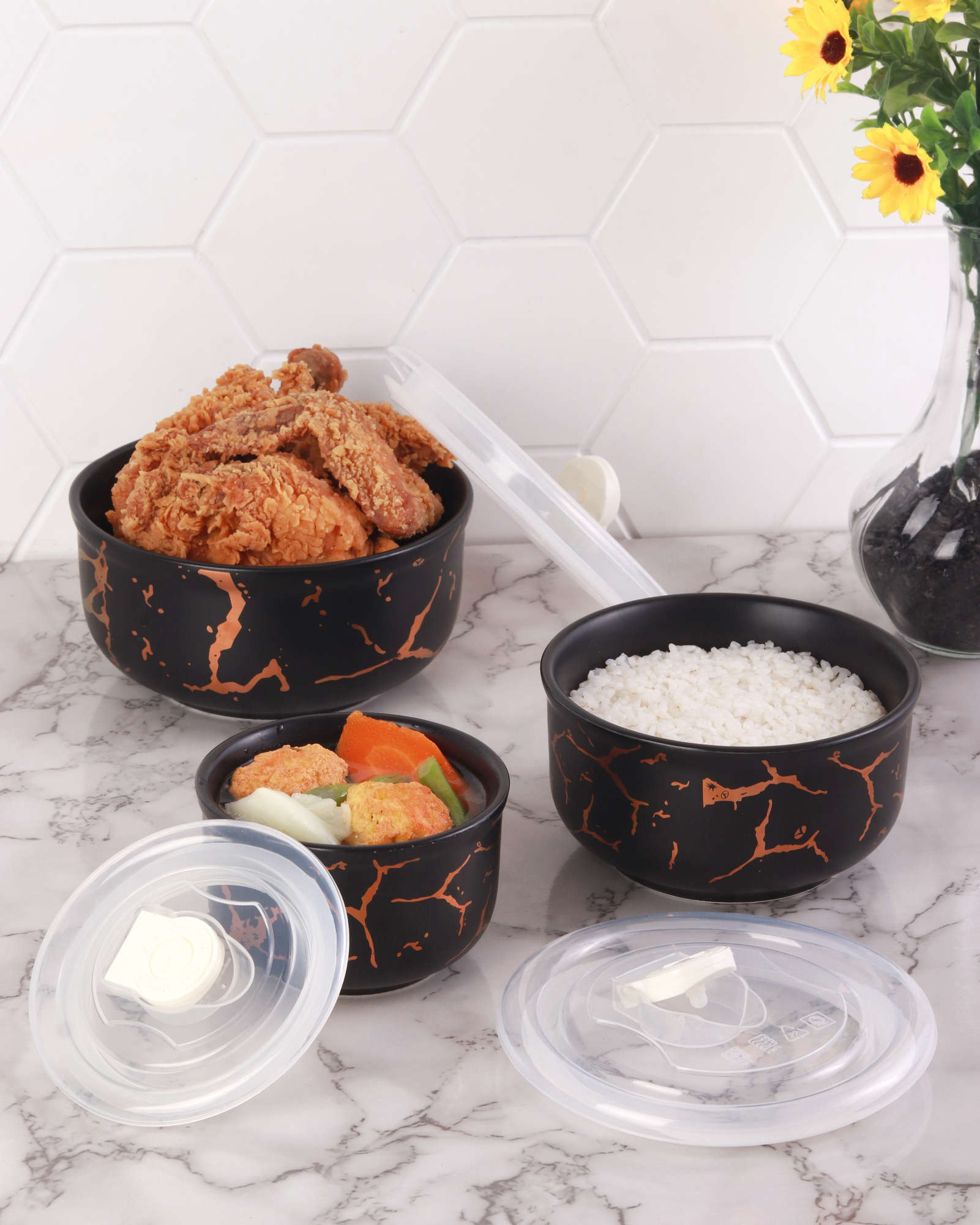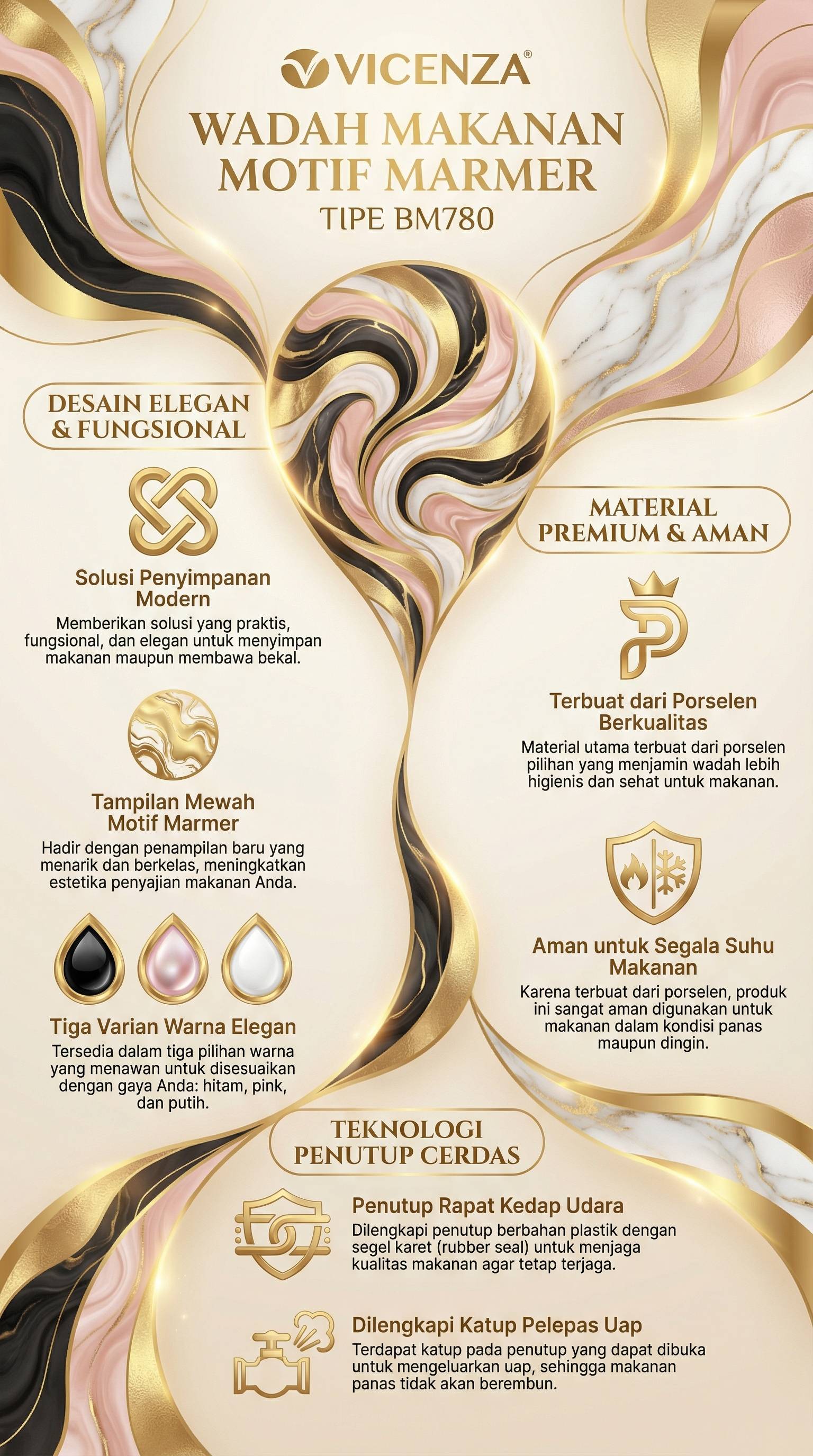 Produk ini aman untuk digunakan sebagai wadah makanan dalam segala suhu karena terbuat dari porselen yang berkualitas. Dilengkapi dengan penutup berbahan plastik dan seal berbahan rubber, kualitas makanan dapat terjaga karena tertutup dengan rapat. Terdapat katup pada penutupnya sehingga dapat dibuka dan tidak perlu khawatir makanan Anda berembun saat masih panas.