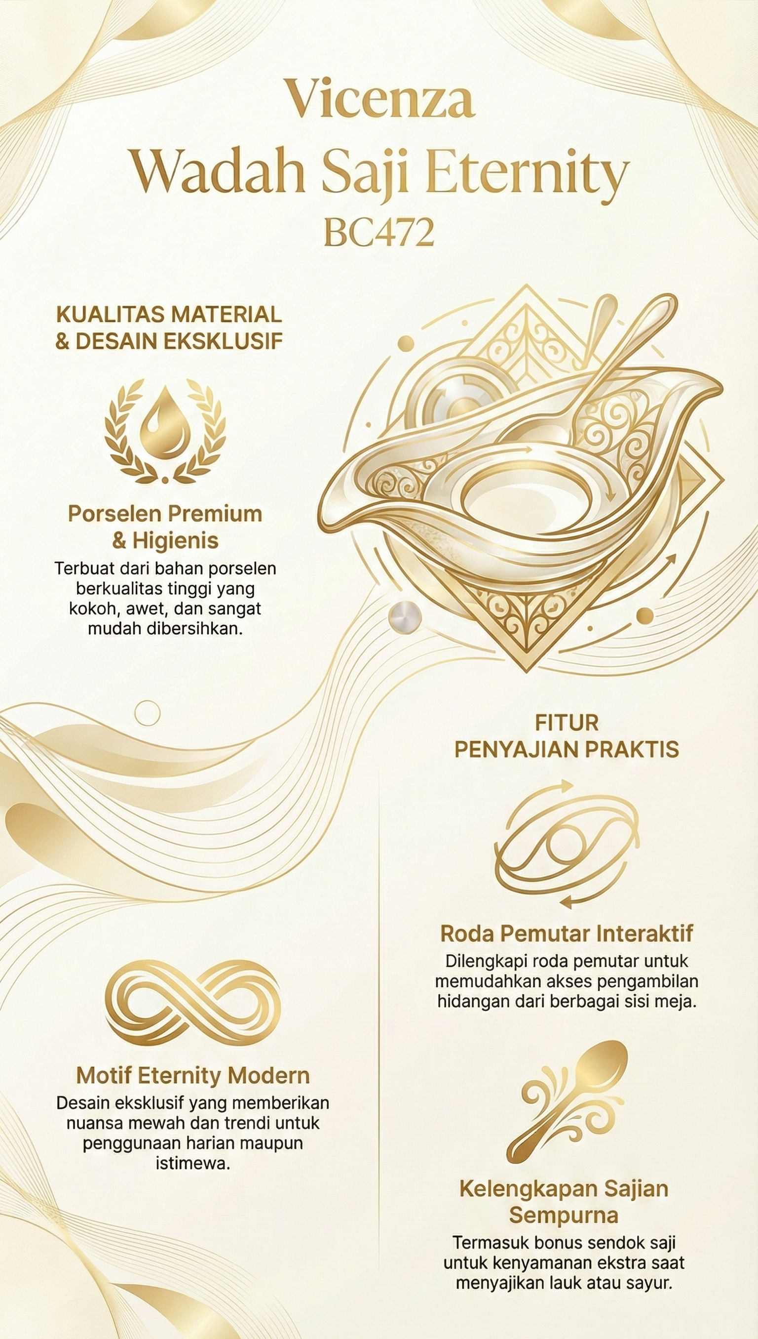 Dengan desain mewah dan fitur fungsional, Vicenza Wadah Saji Eternity BC472 menjadikan momen makan lebih rapi, praktis, dan berkelas.