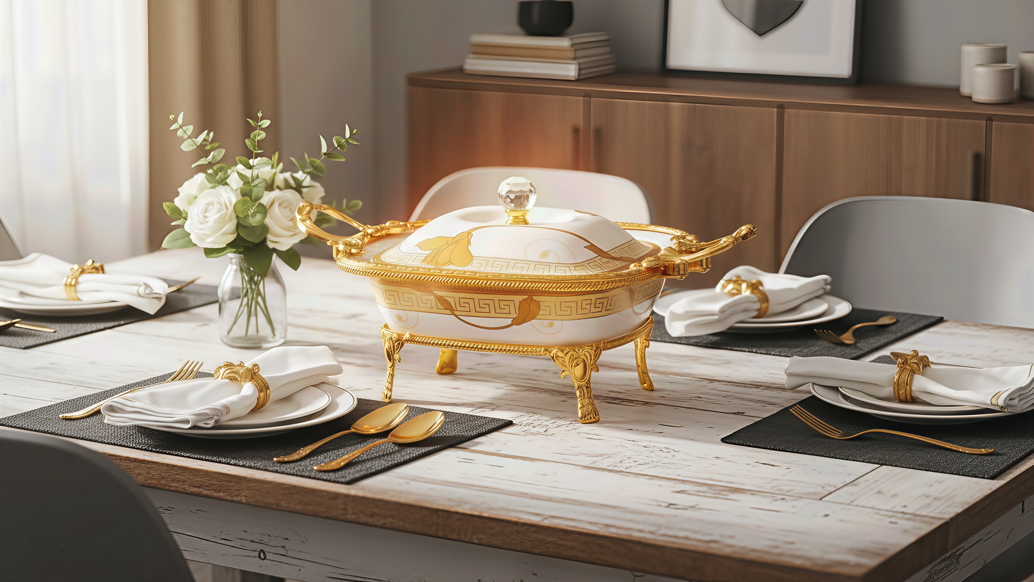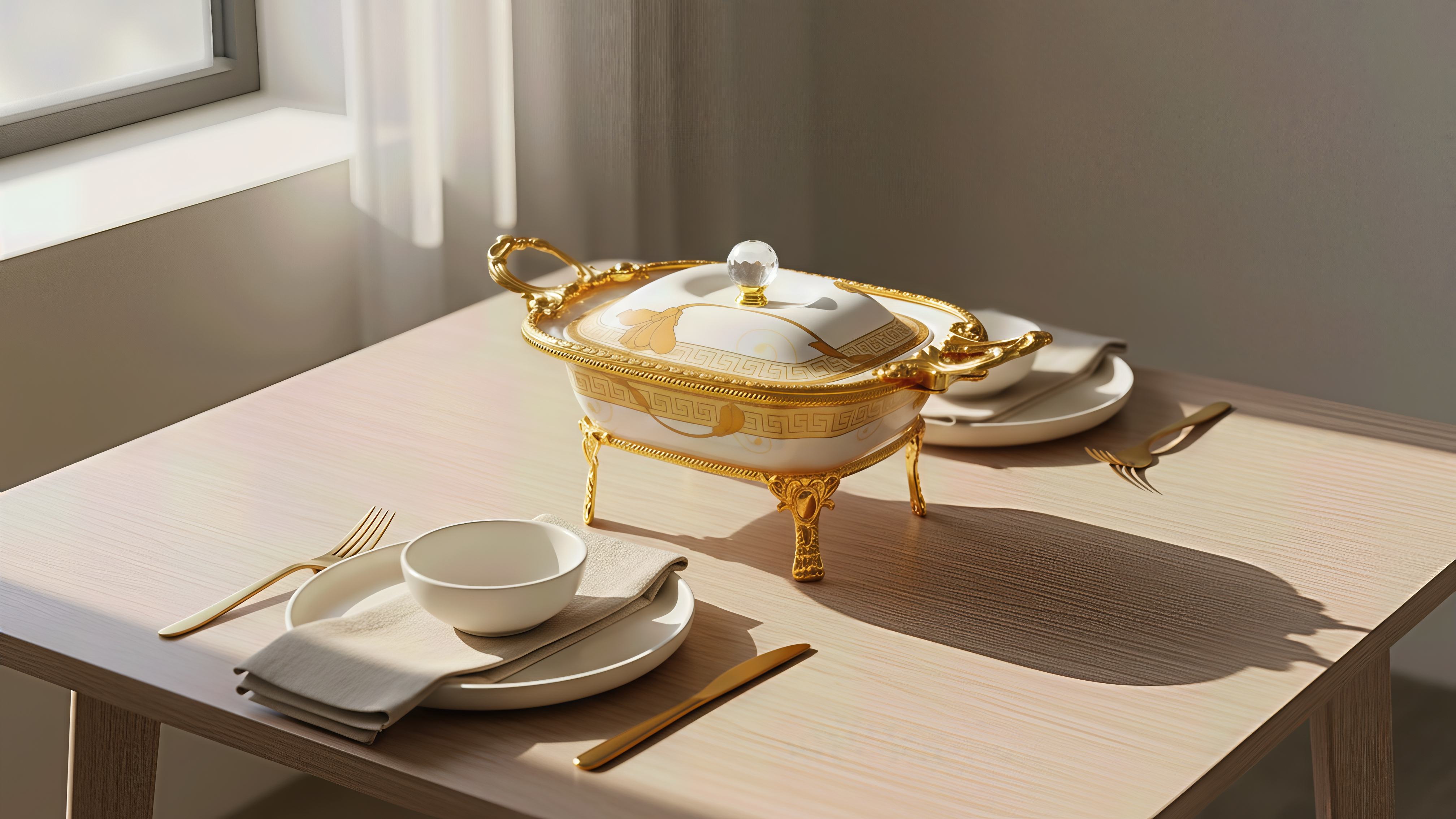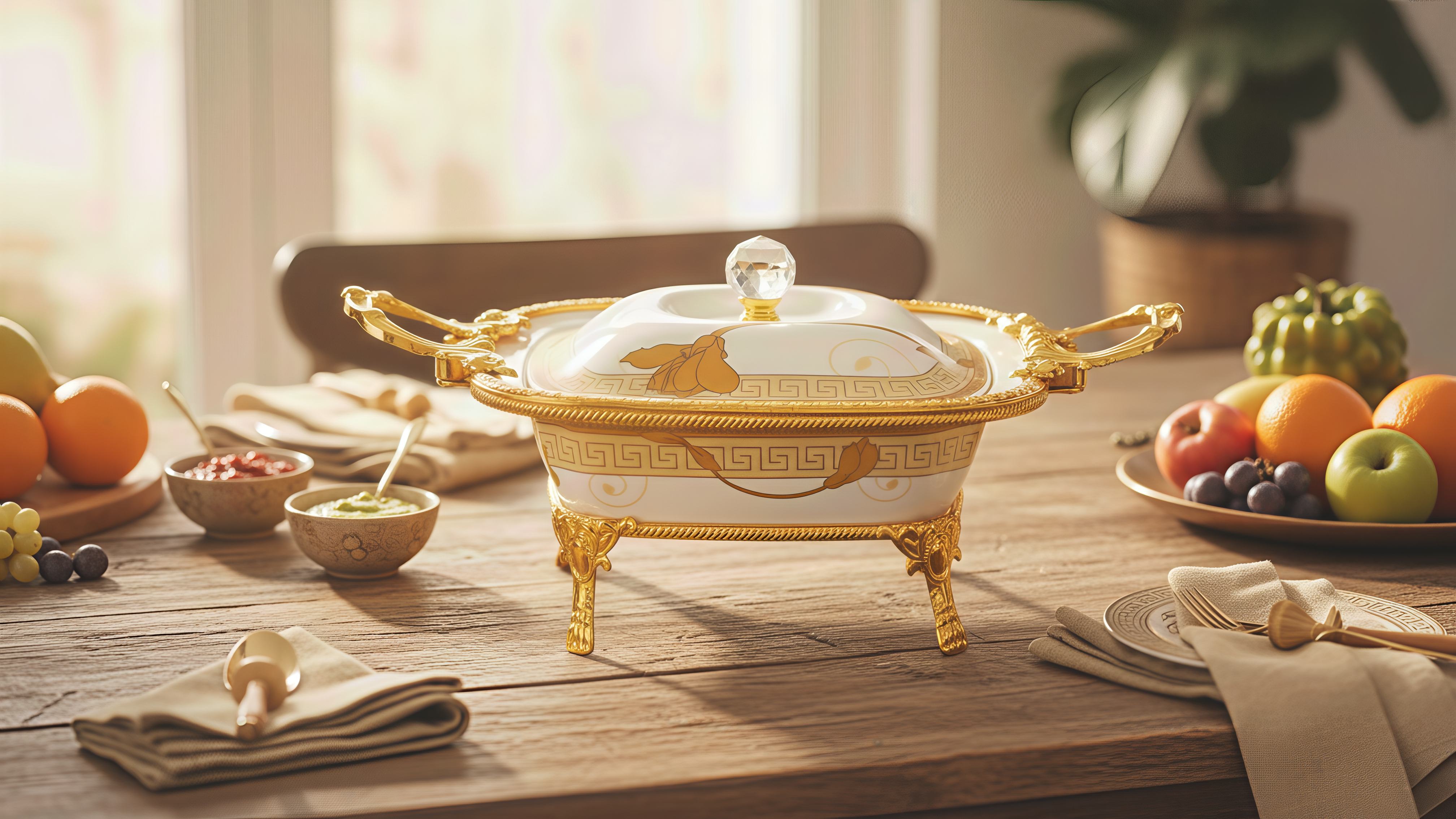 Sajikan hidangan dengan Wadah Saji Persegi Klasik (classic square casserole) M35 dari Vicenza! Terbuat dari bahan porselen premium dengan balutan motif Lily yang menawan. Dilengkapi penutup beserta rak dengan sentuhan warna emas yang memukau. Cocok digunakan untuk menyajikan hidangan dalam berbagai acara seperti arisan, ulang tahun, maupun perayaan istimewa lainnya. Setiap hidangan tersaji dengan lebih sempurna bersama Vicenza!